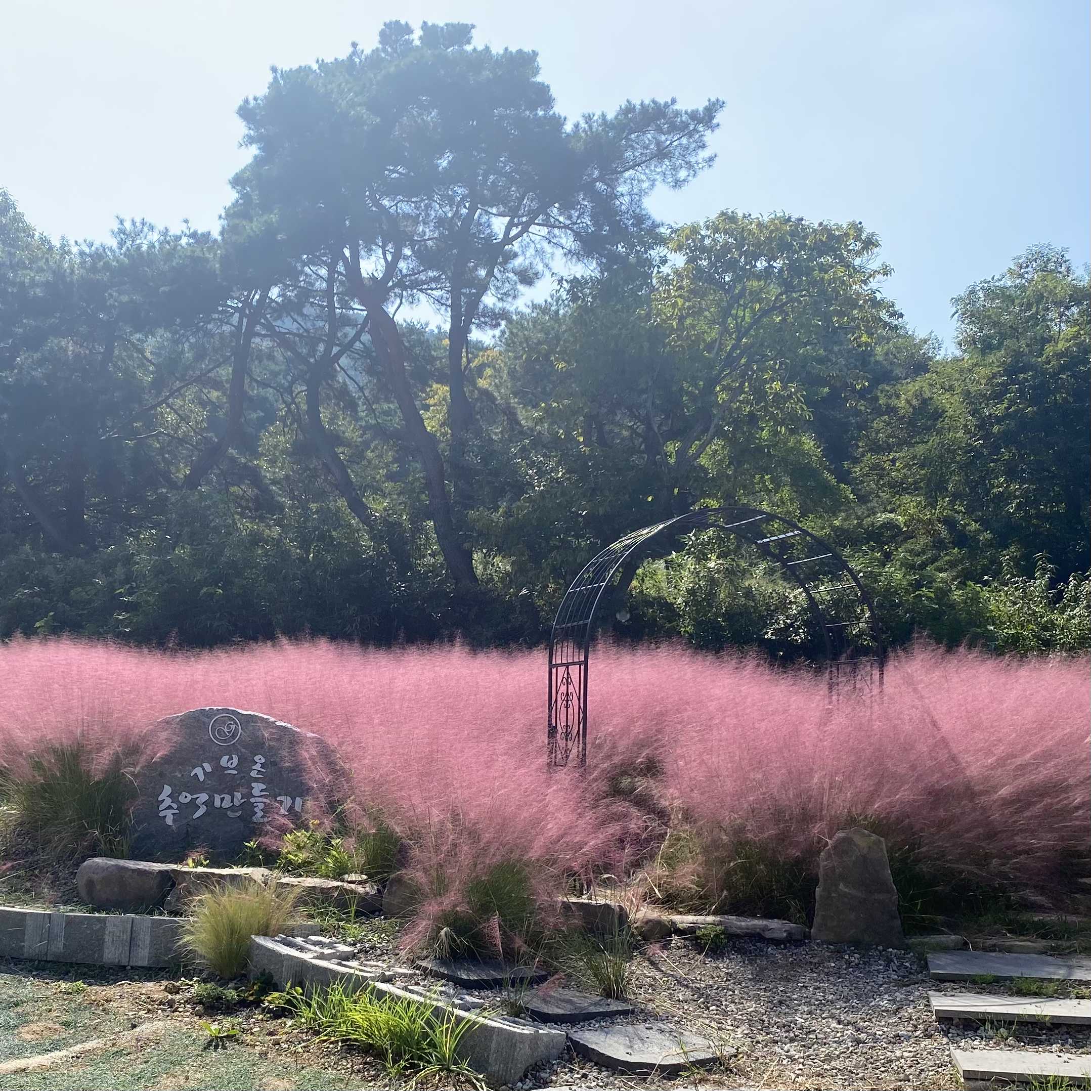 주차하고 나오자마자 눈에 띄는 분홍분홍 너무 예쁜 핑크뮬리 포토존 보고 심쿵했어요.