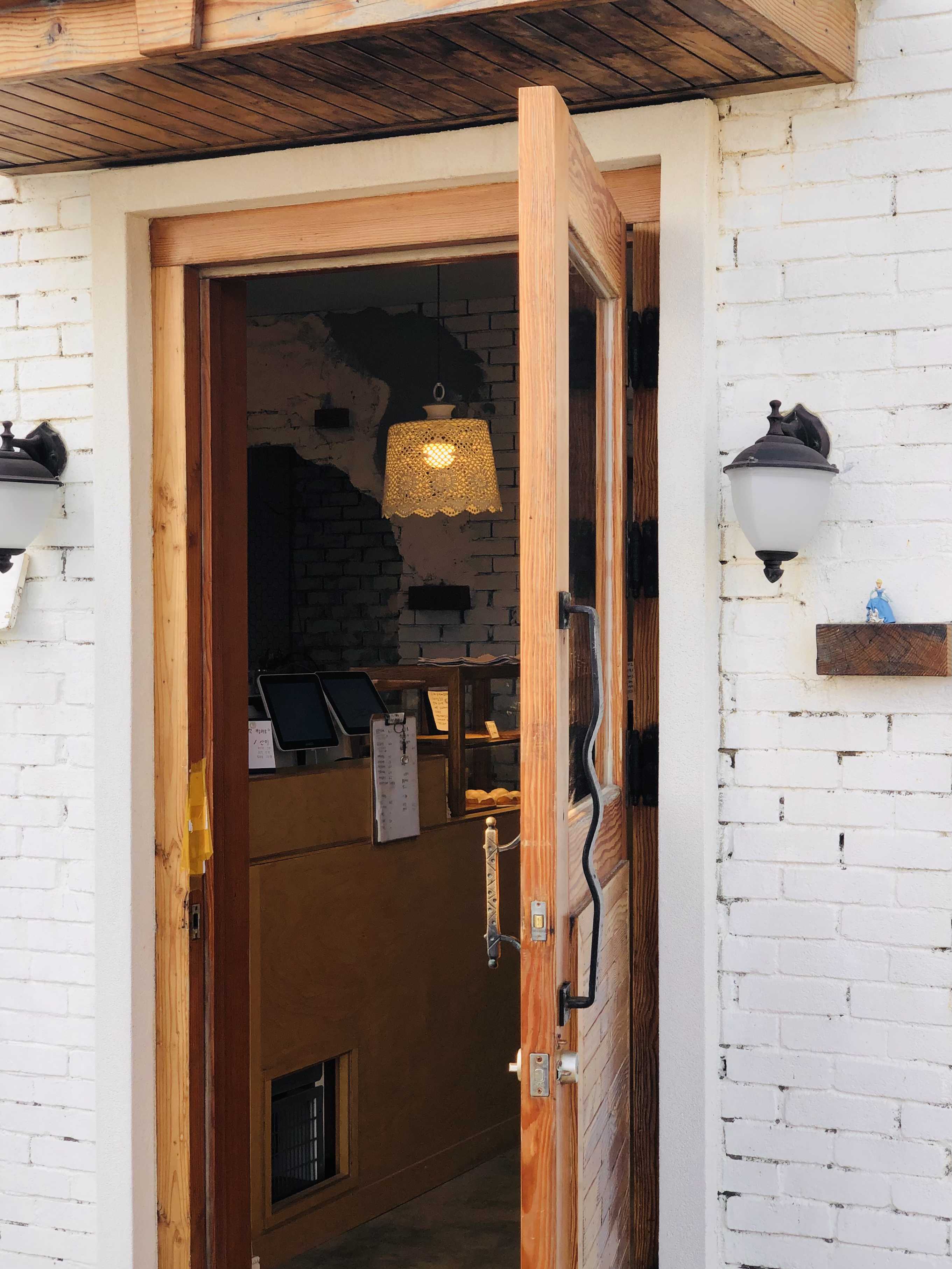 새하얀 색으로 칠해진 건물에 나무 문과 창문틀이 포인트가 되어 너무 예쁘더라구요!
