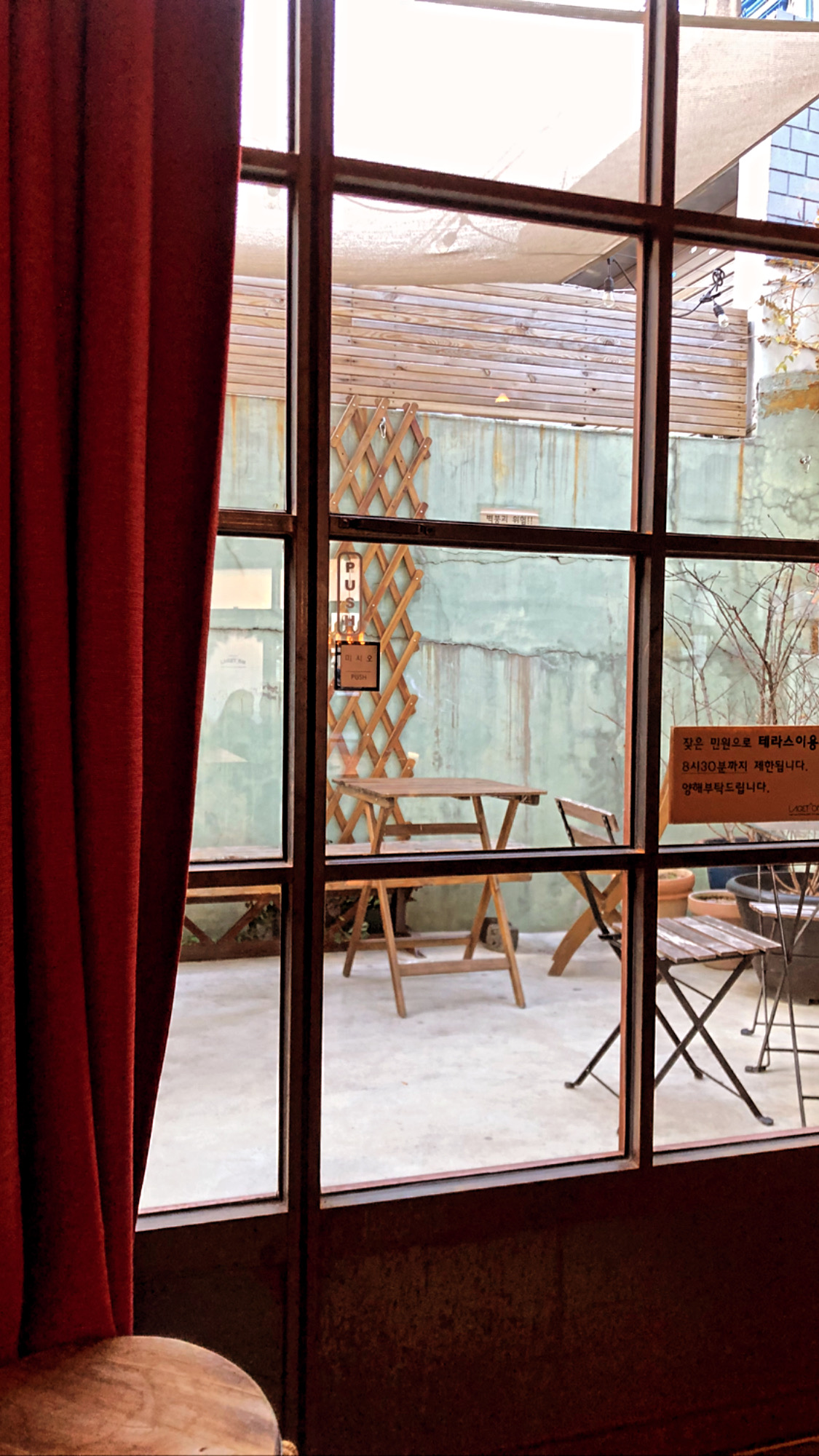 거의 만석인 실내에서 앉을 자리가 있나 둘러보다가 제 눈에 띈 야외석!