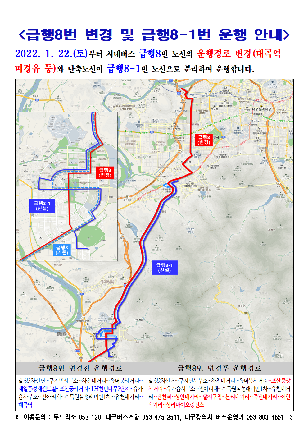 급행8번 노선 운행경로가 일부 변경되고, 급행8-1번 버스가 신설된다고 합니다.