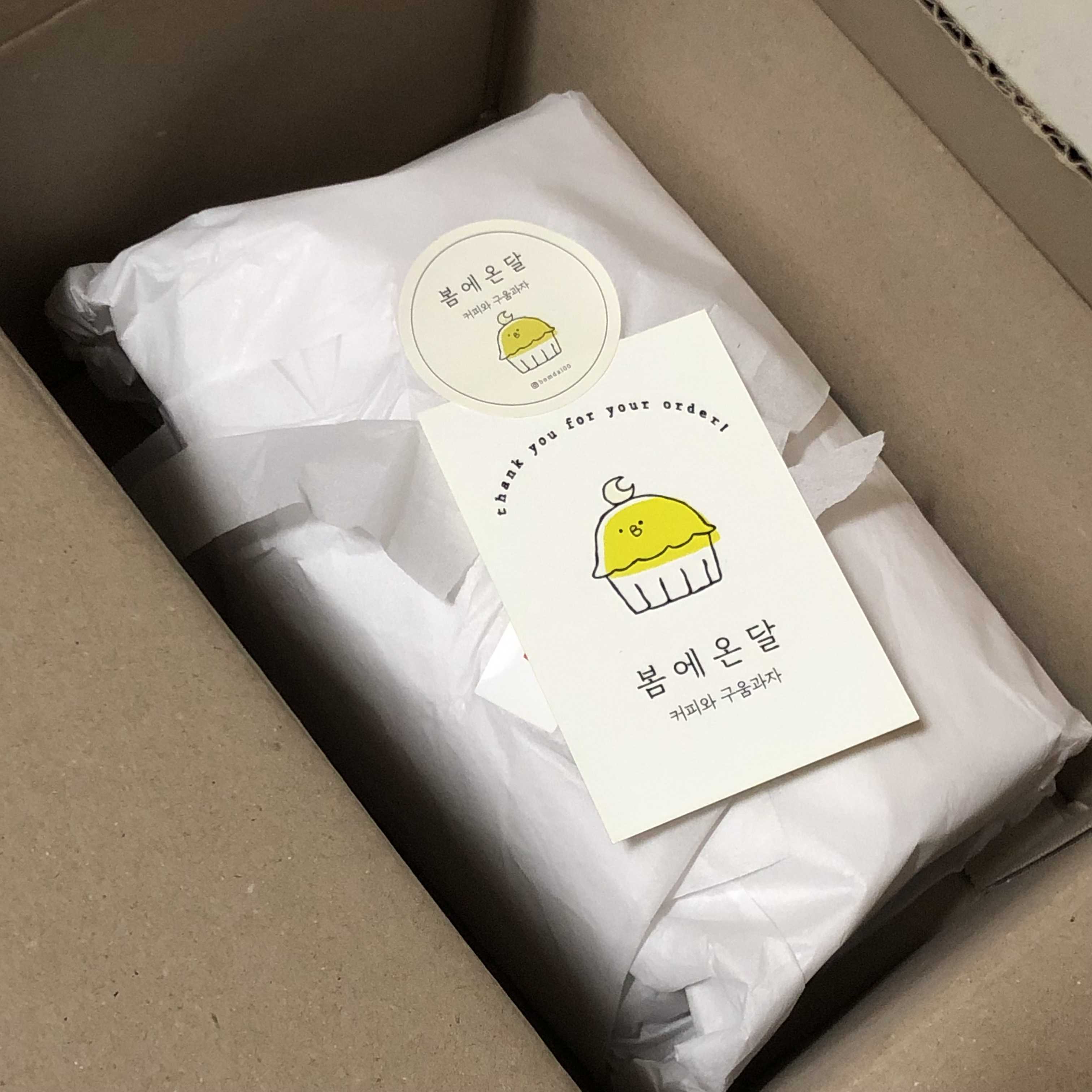 택배 상자 열자마자 귀여운 병아리디저트(?) 그림이 눈에 띄었어요. 캐릭터두 가게 이름두 몽글몽글~
