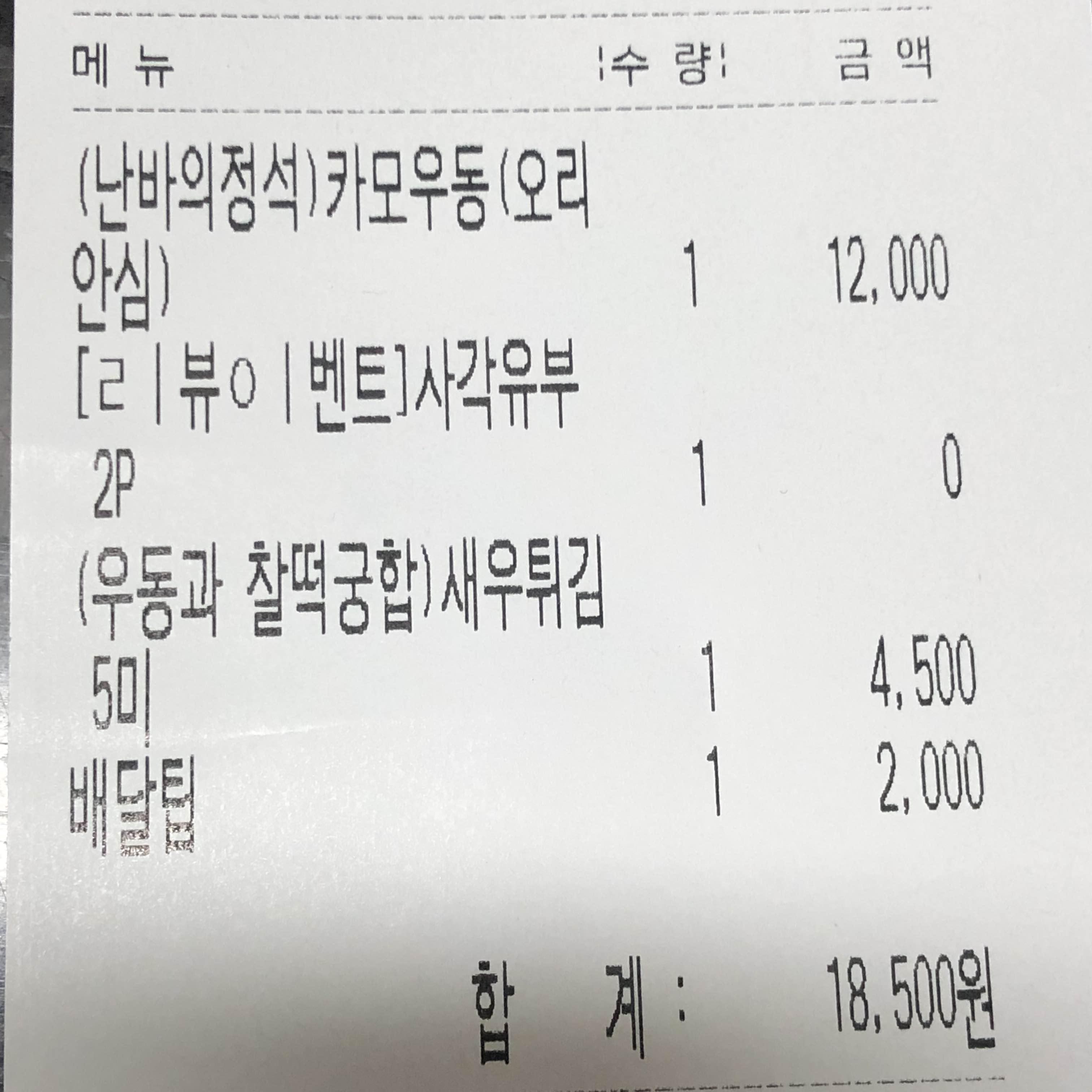 배달팁까지 총 18,500원이 나왔네요.