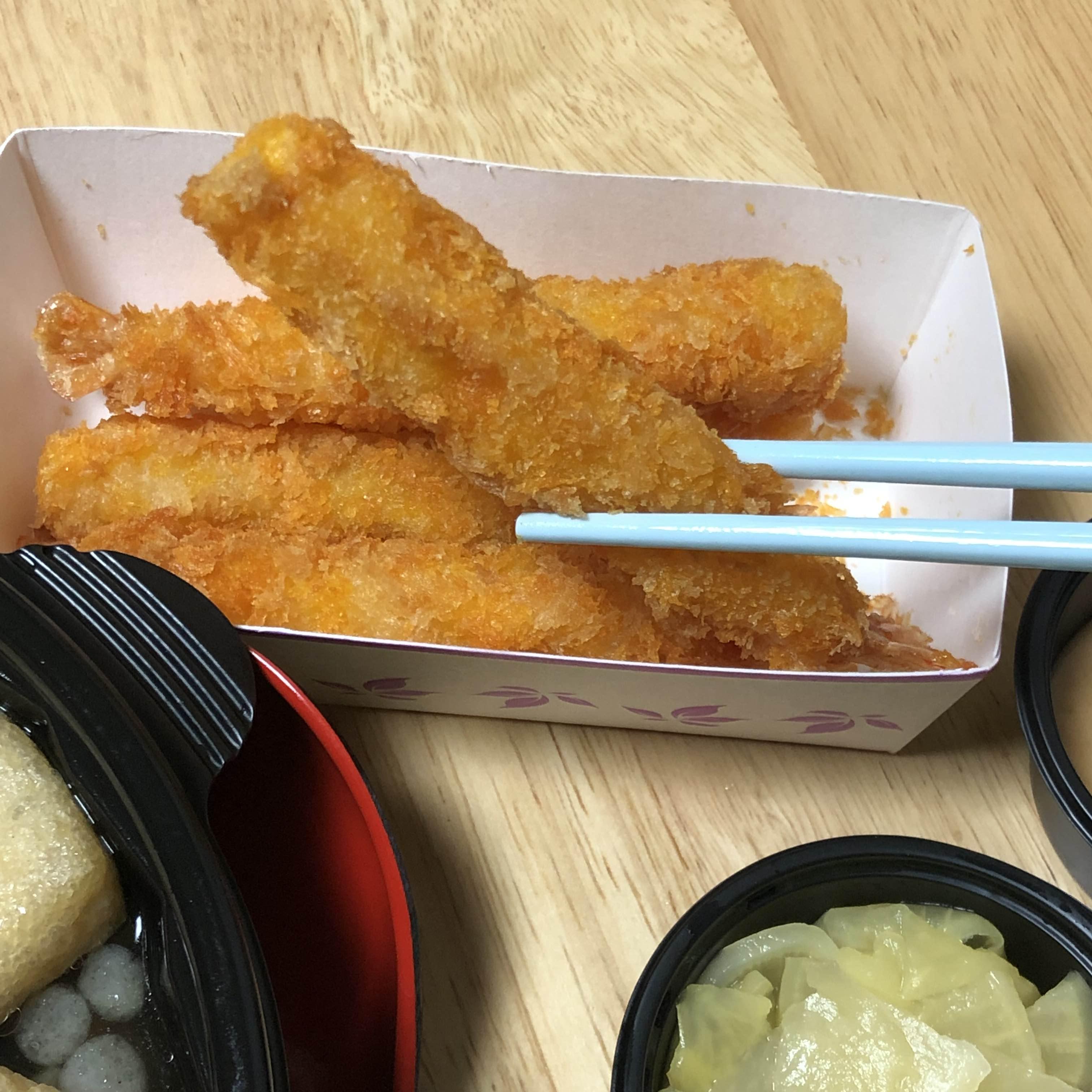 그리고 튀김도 곁들여야겠다 싶어서 우동과 찰떡궁합이라 적힌 새우튀김 5미 추가했습니다.