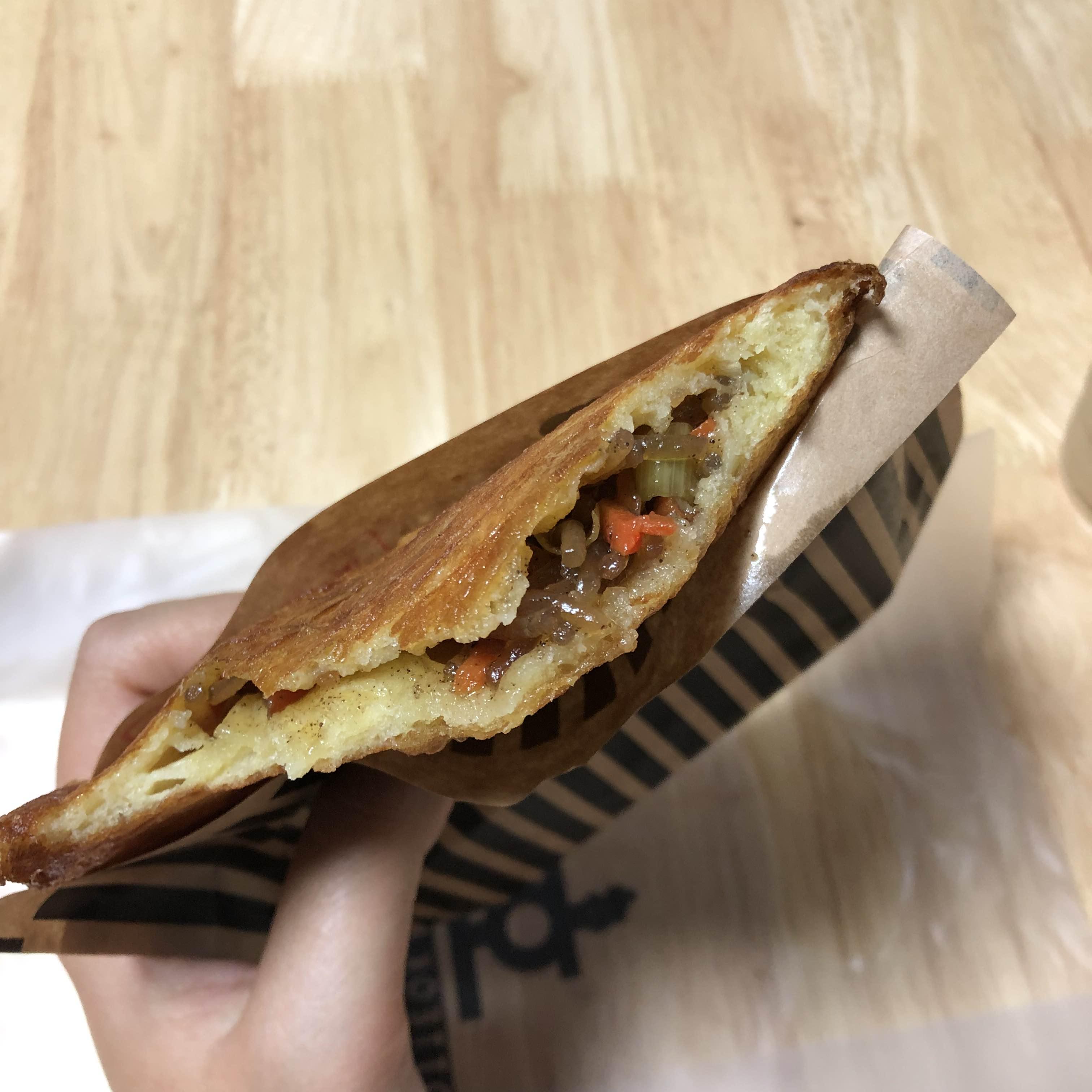 꽉 찬 잡채속과 바삭한 호떡 넘나 맛있어유!!!!!