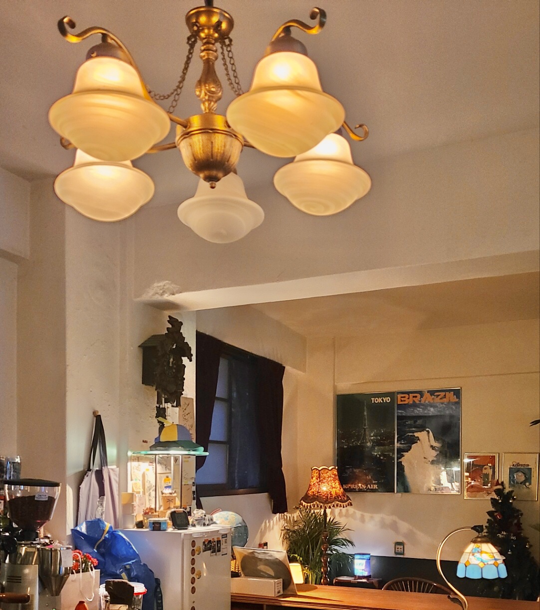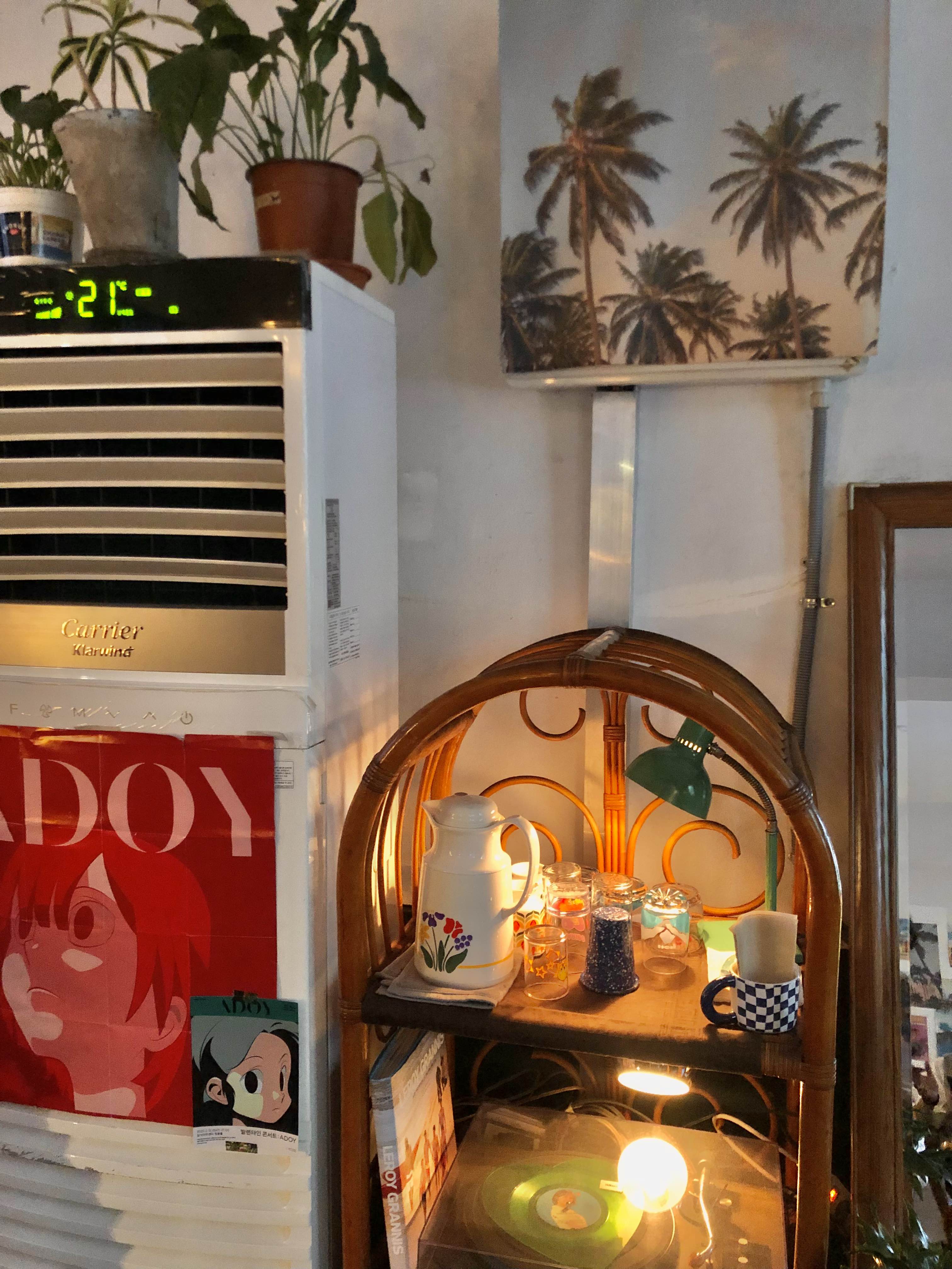 벽에 이런저런 사진 엽서 포스터들을 붙여둬서 심심할 새 없는 인테리어!