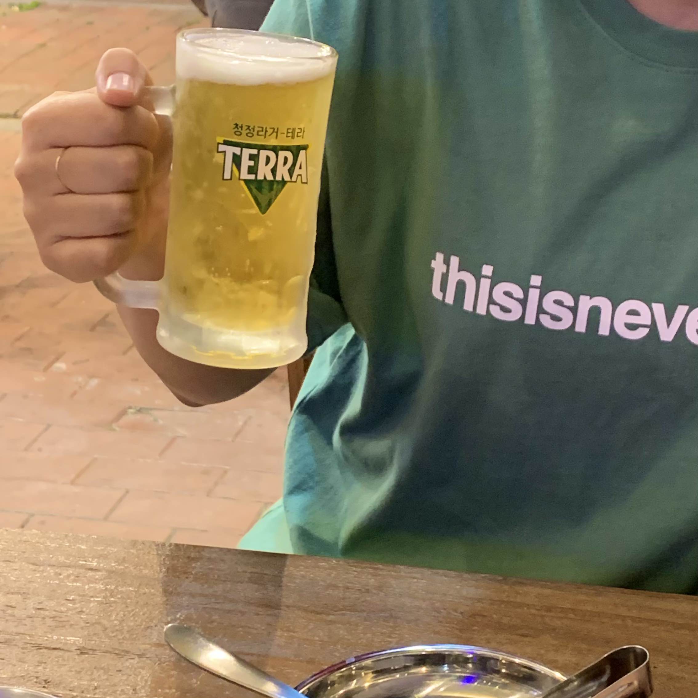 반은 실내 반은 야외인 자리 친구가 실내쪽 제가 야외쪽에 앉았어영.