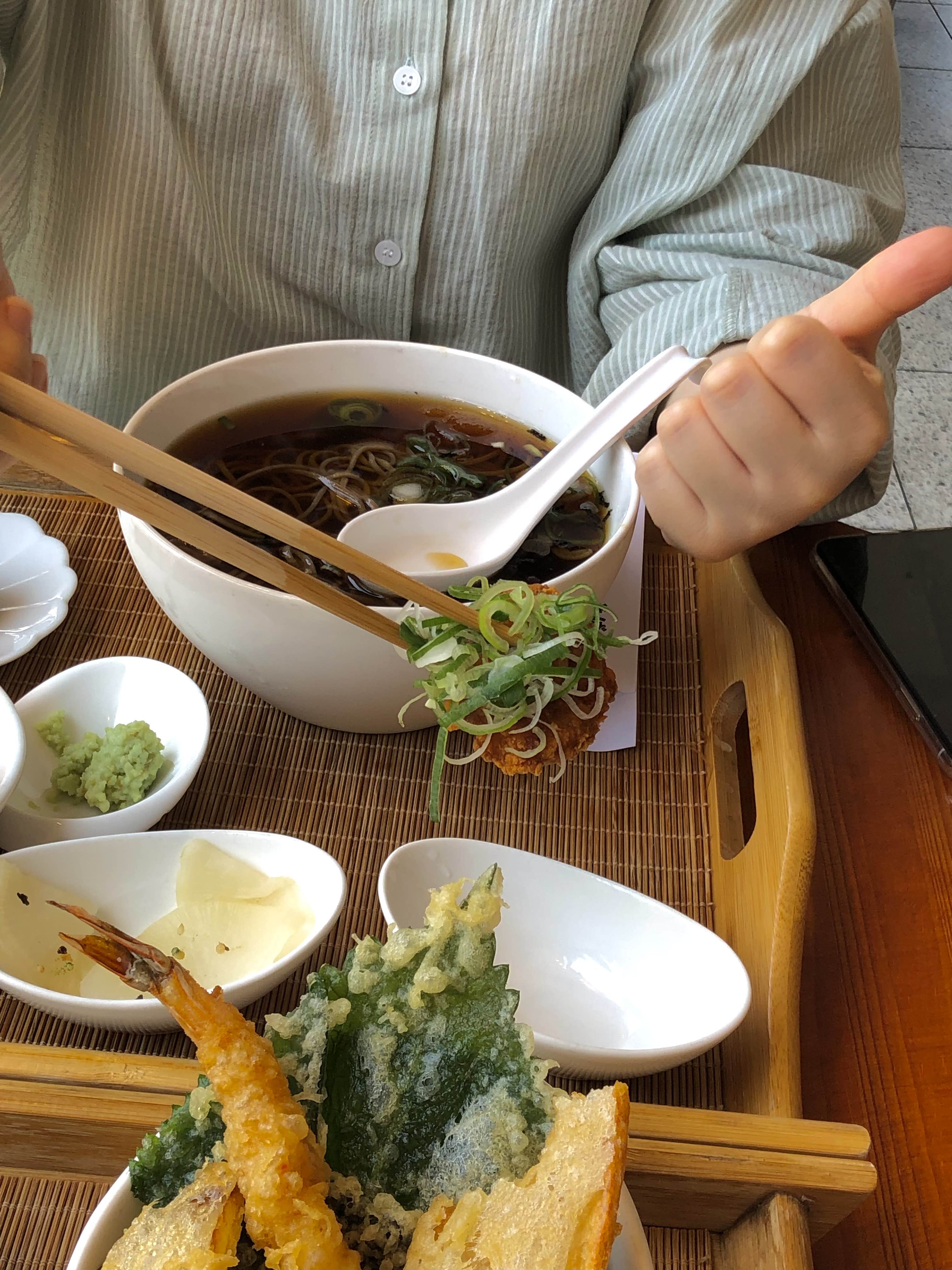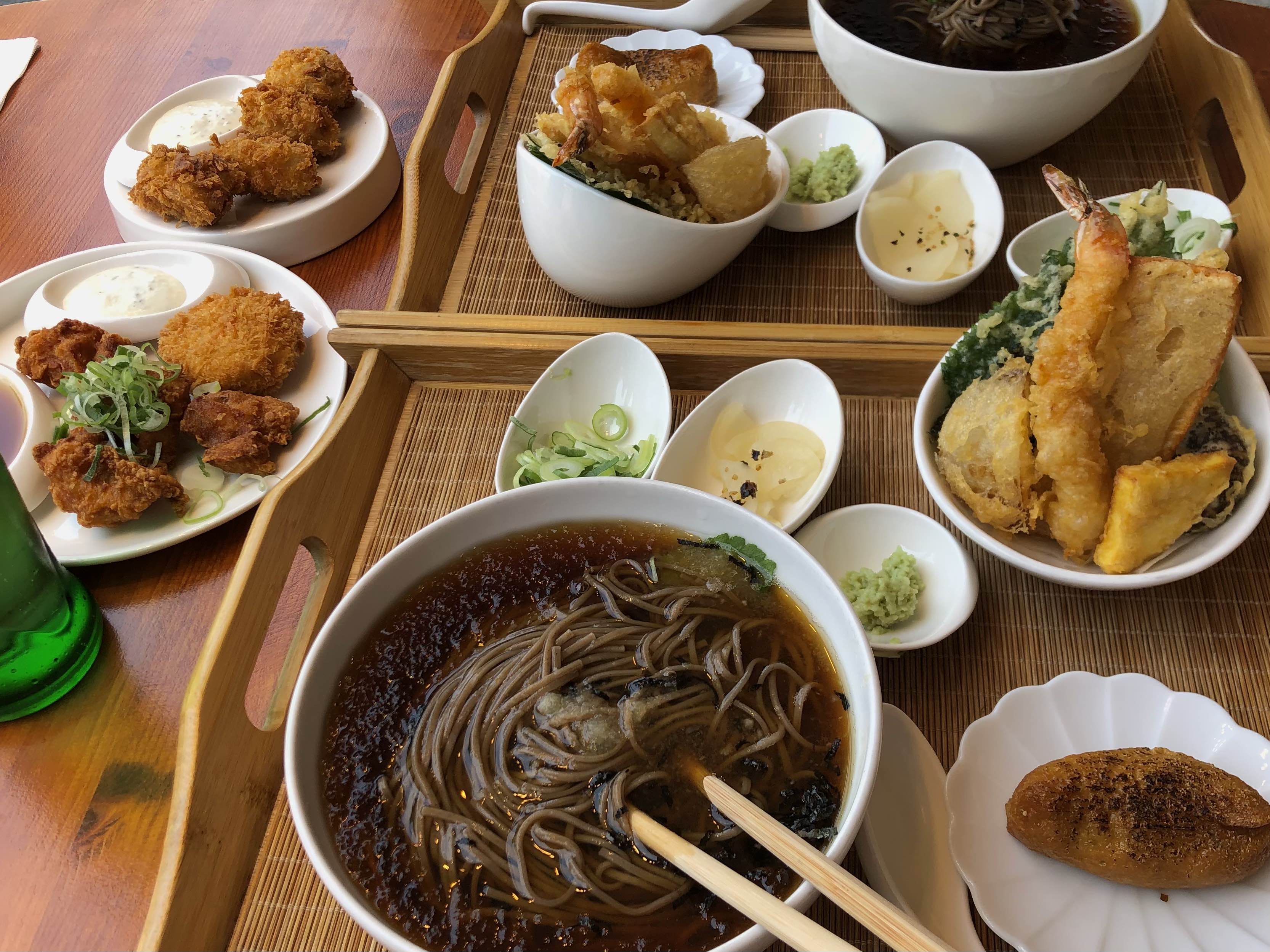 다양한 튀김과 시원한 냉소바 그리고 겉이 살짝 구워진듯한 유부초밥으로 구성이 좋아용.