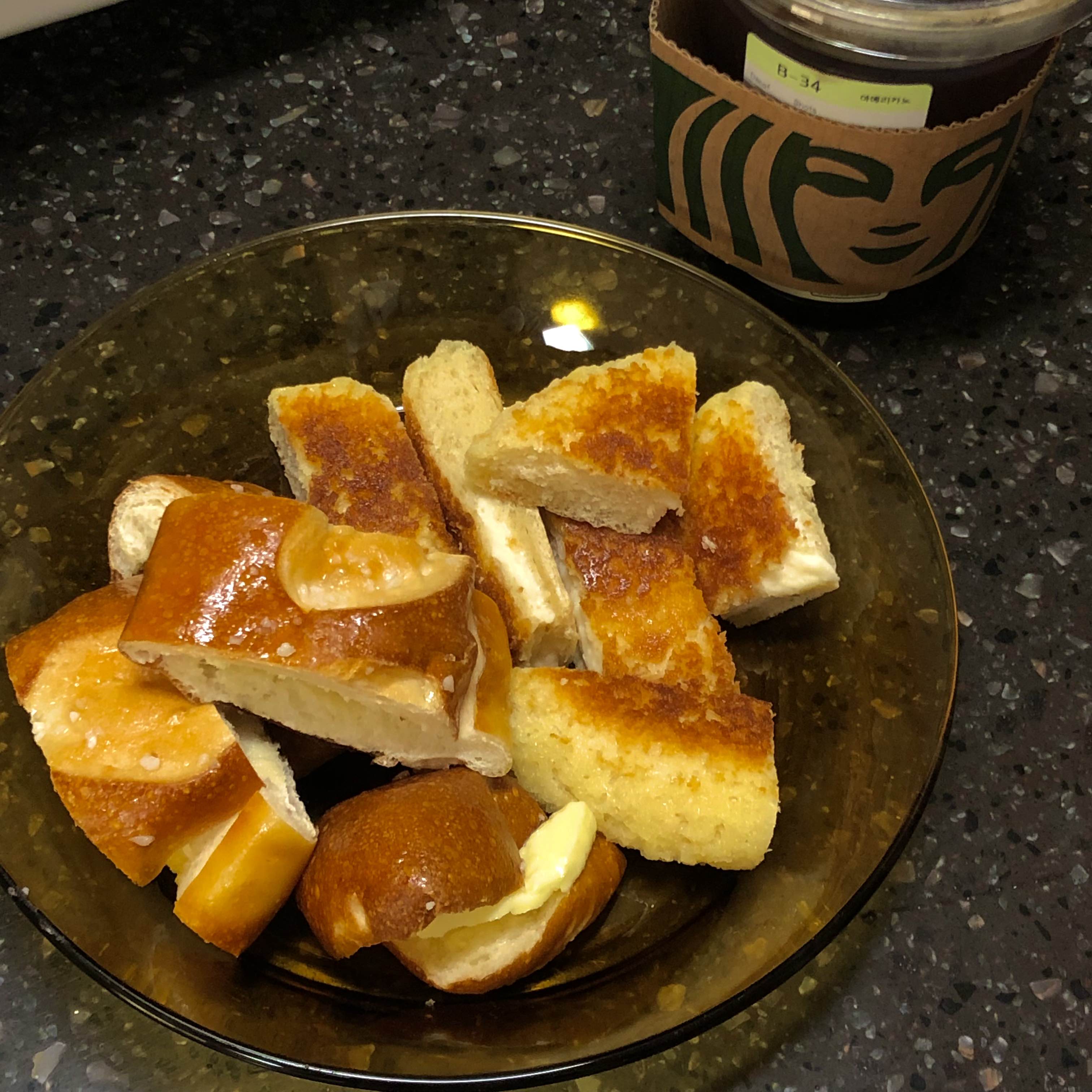 먹기 좋은 크기로 자른 빵이랑 아메 조합은 굳뜨!