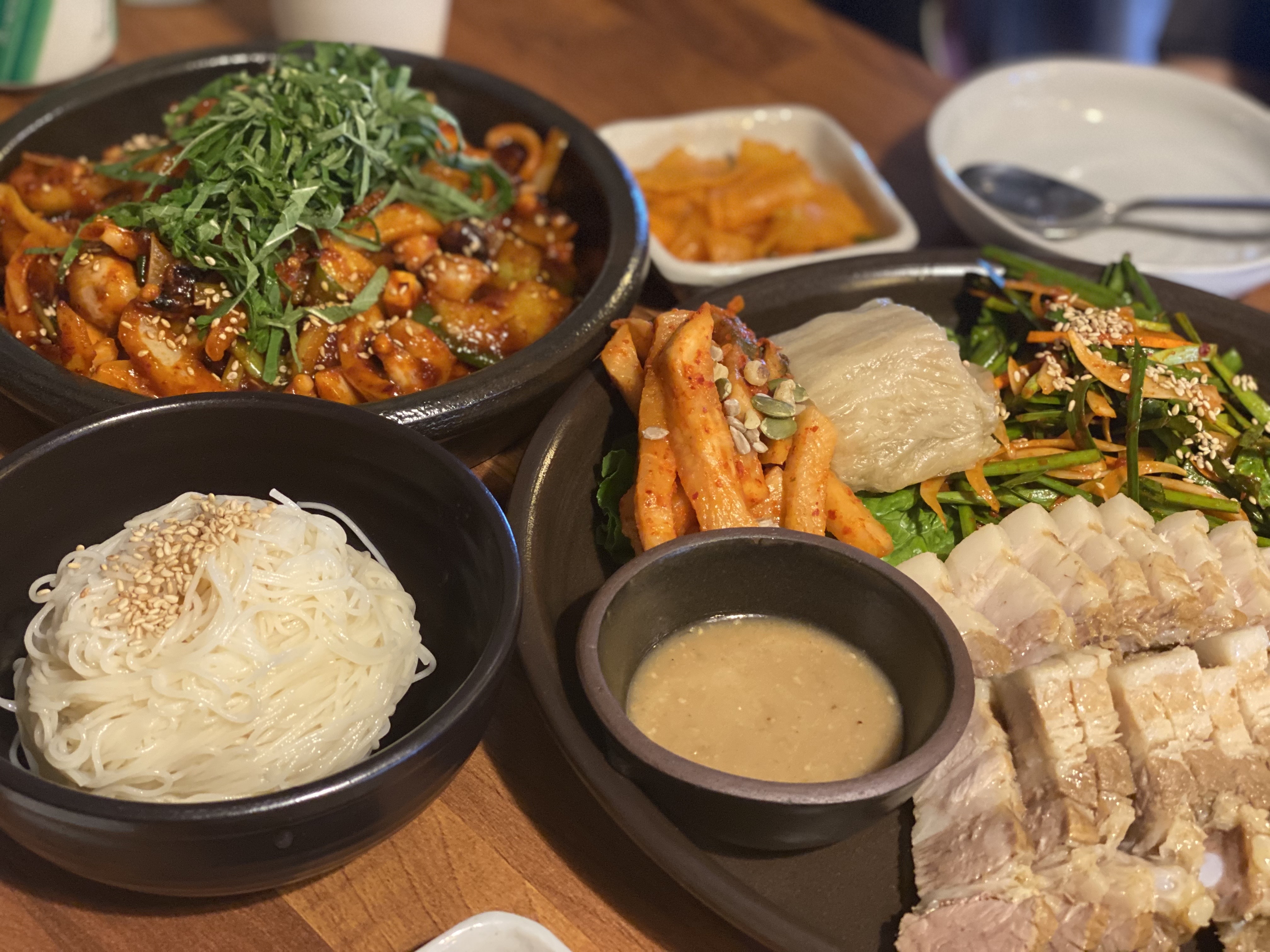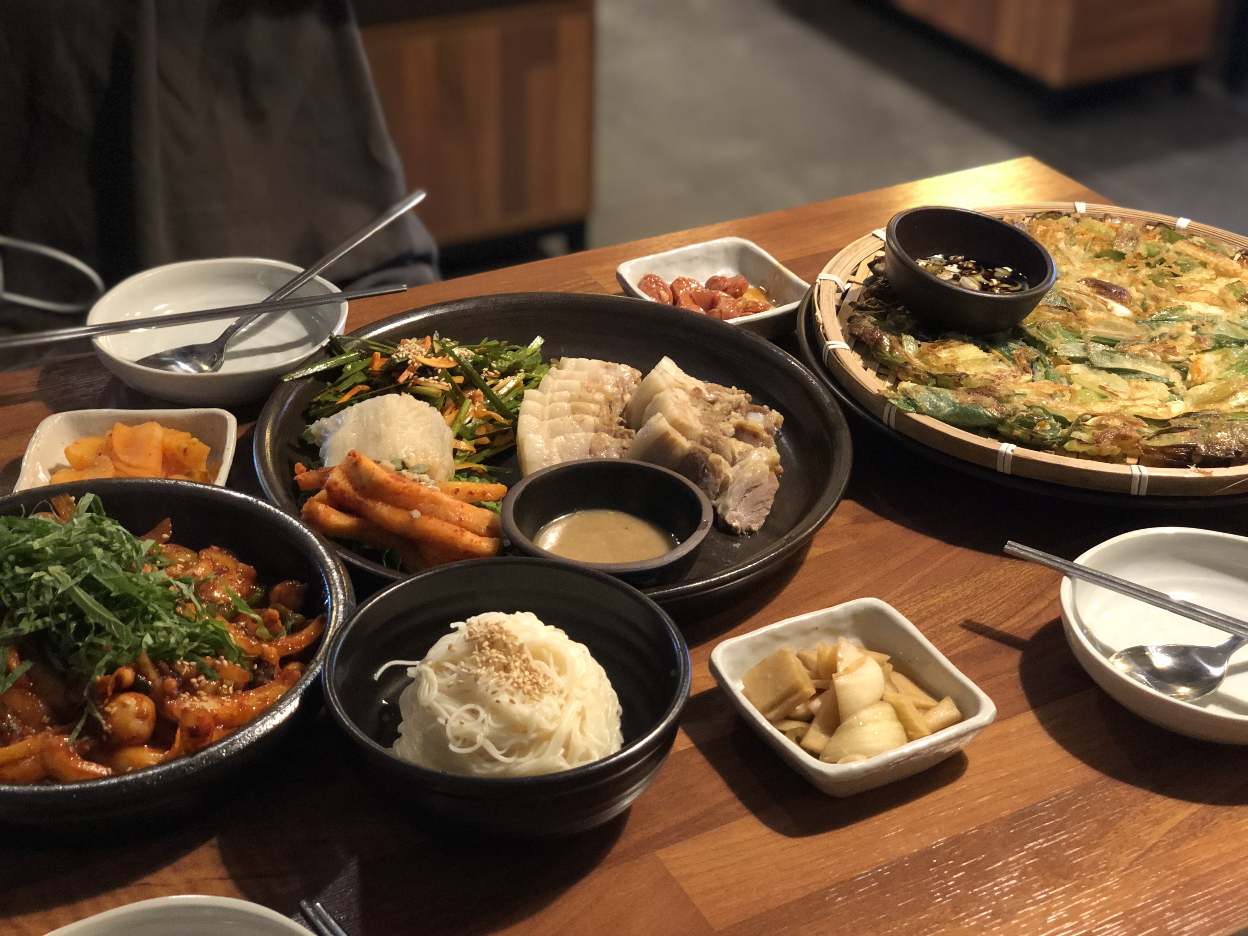 다 맛있어 보였는데 저희는 낙지볶음 소면 추가 / 보쌈 / 대파전 요렇게 골랐어요.