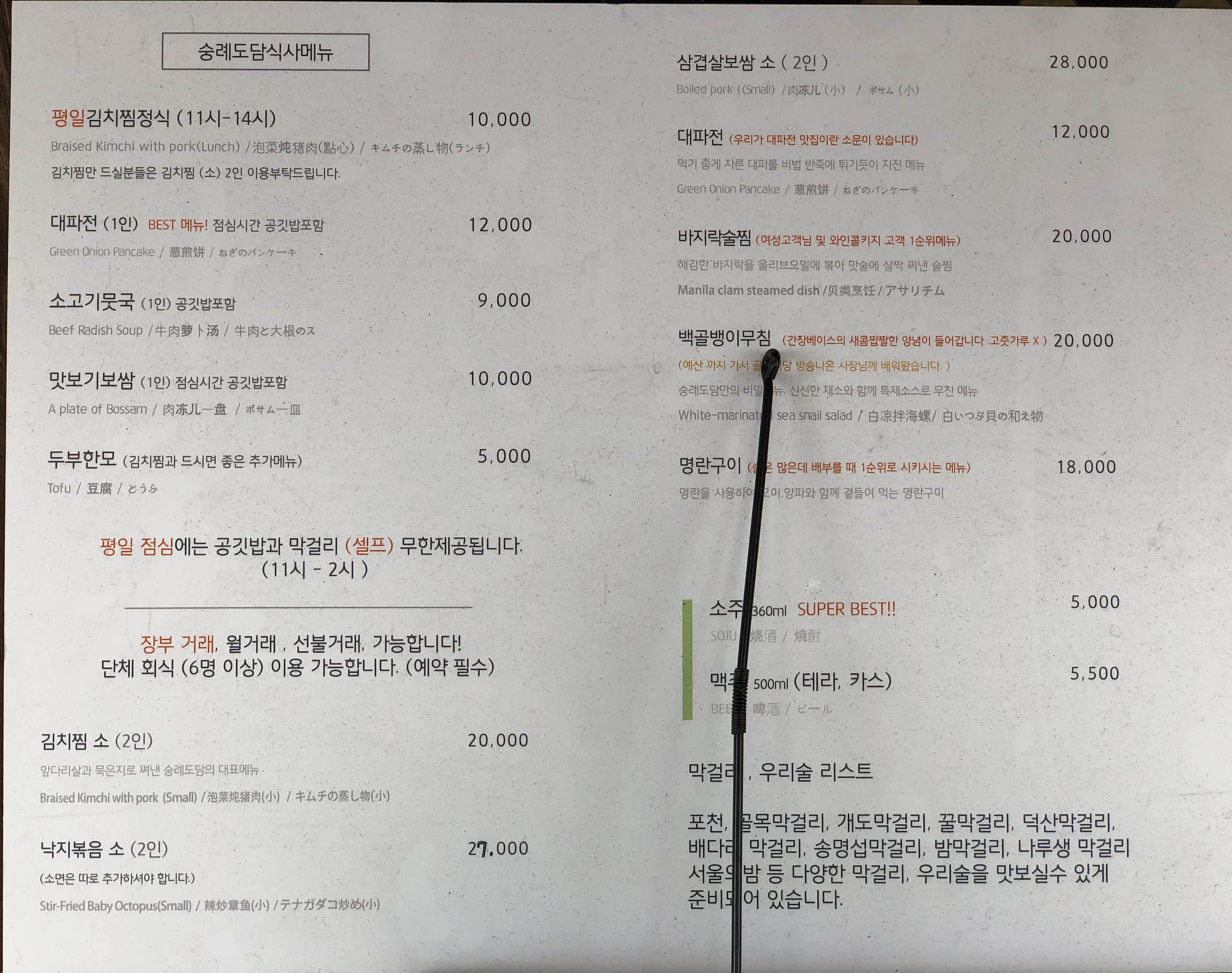 밑으로는 숭례도담 메뉴판 사진 ↓