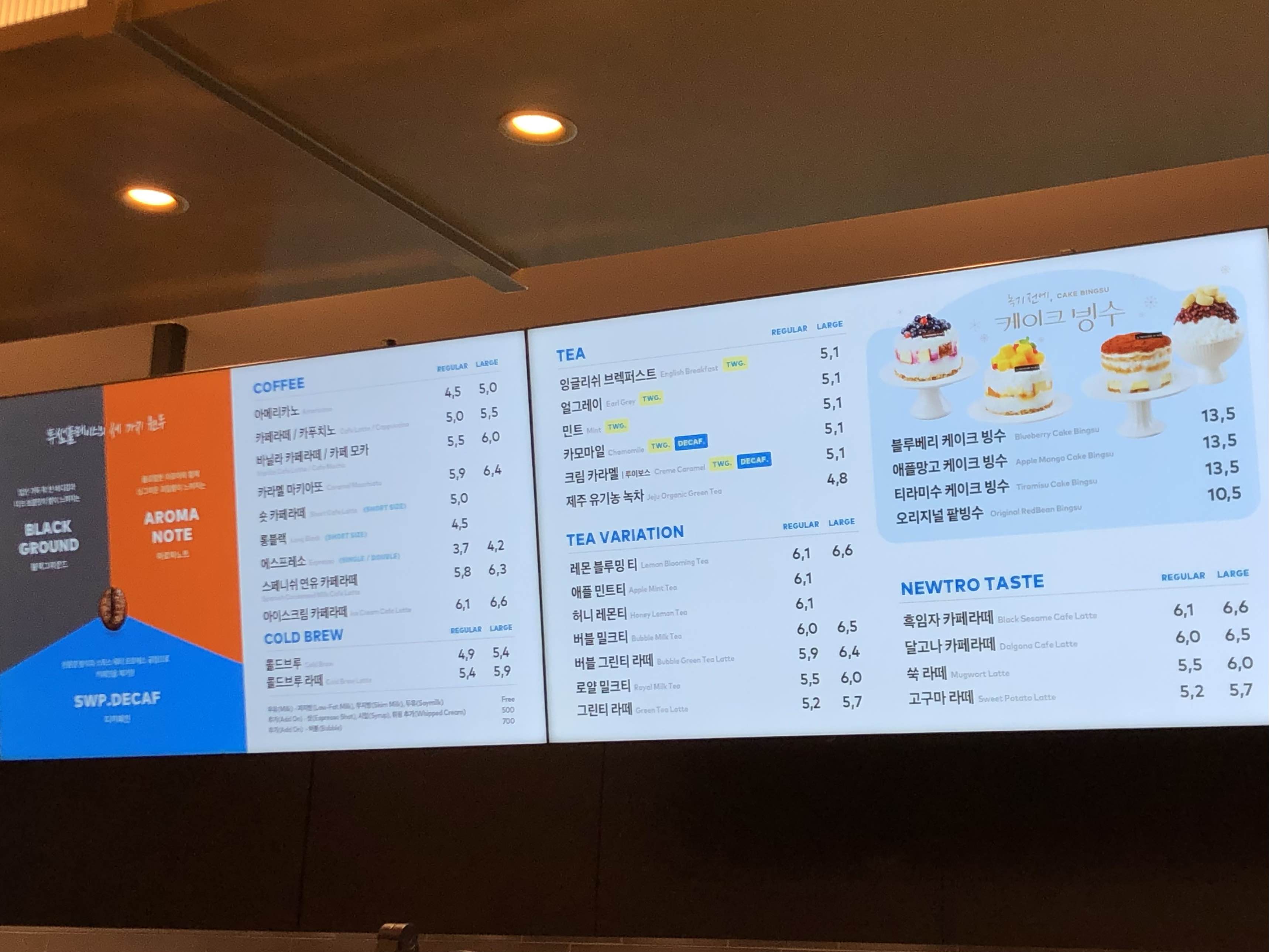 투썸플레이스 메뉴판입니다.