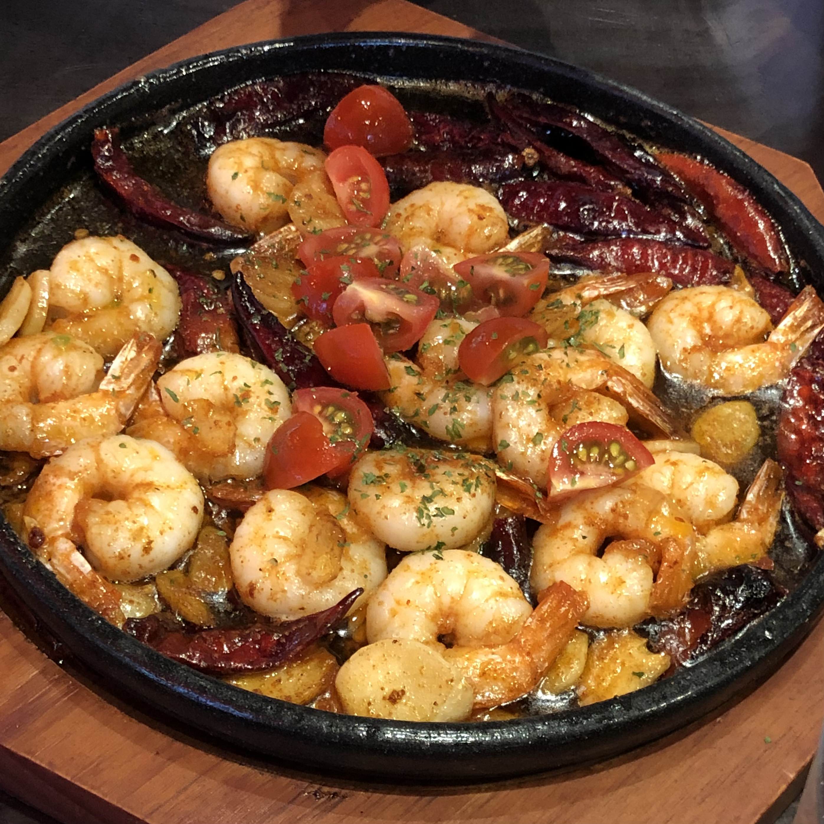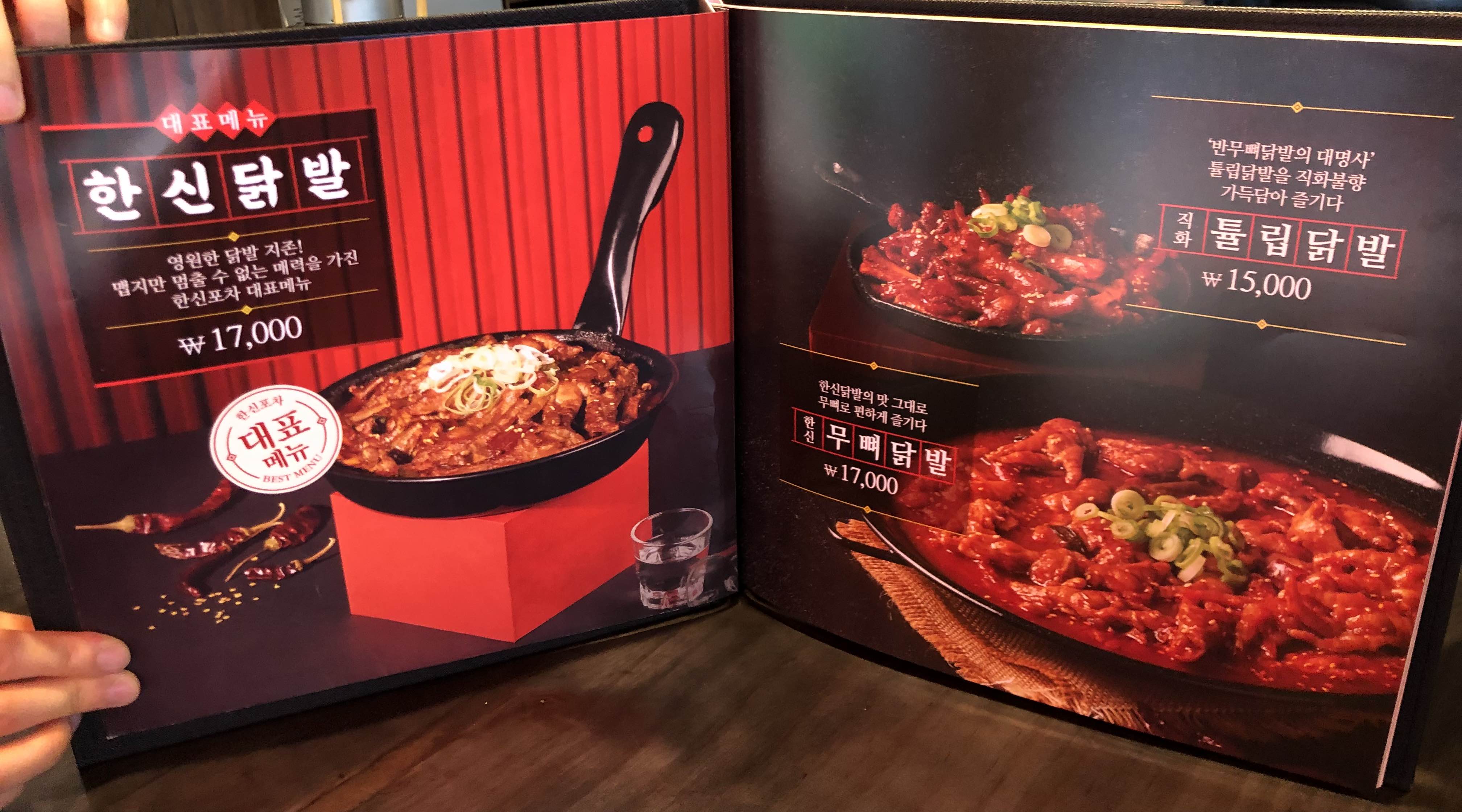 저희는 음식 메뉴로는 무뼈닭발 / 감바스