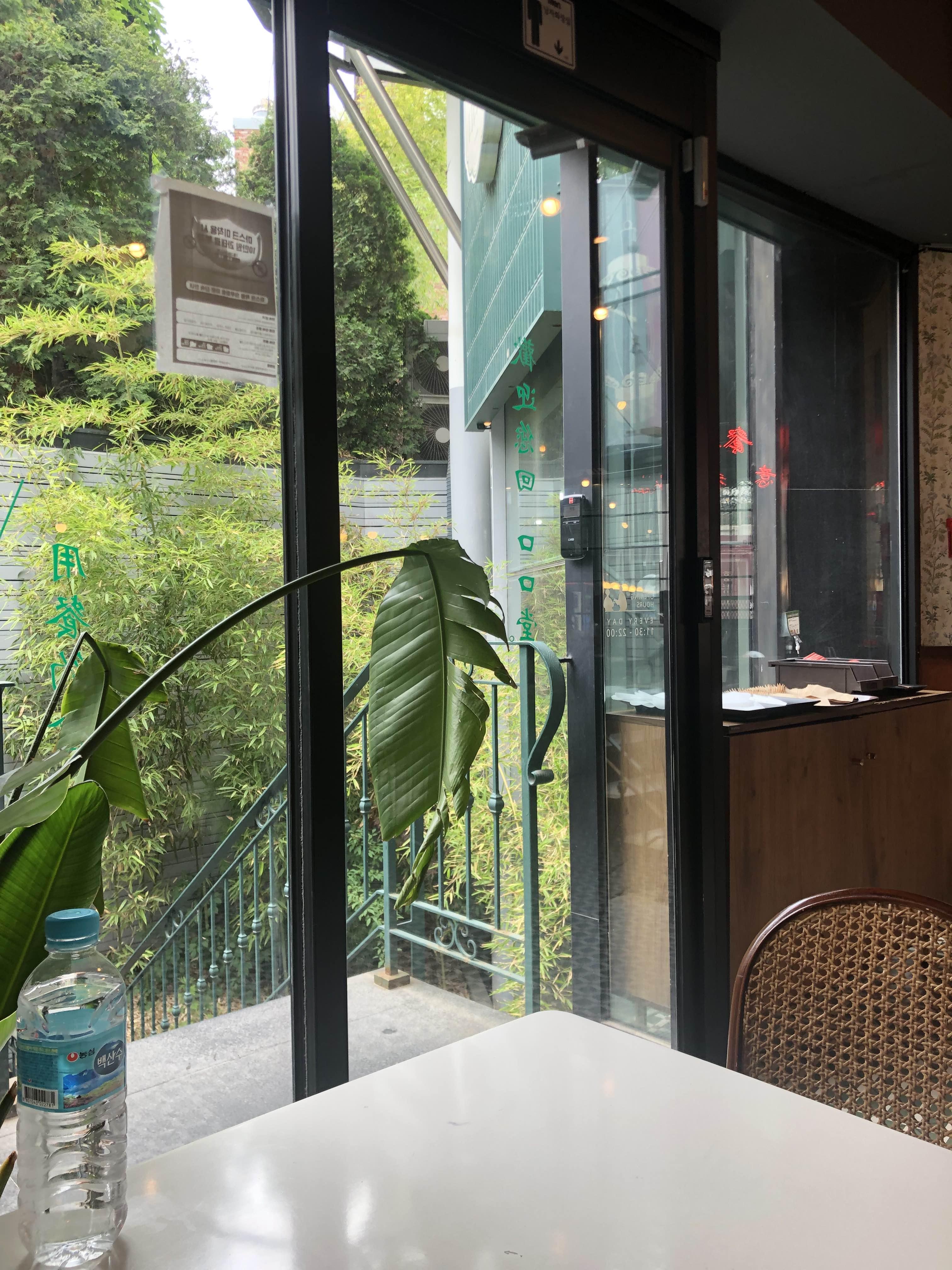 저희는 요 자리에 앉았습니다. 밖이 보여서 다른 자리에 비해 밝았어요.