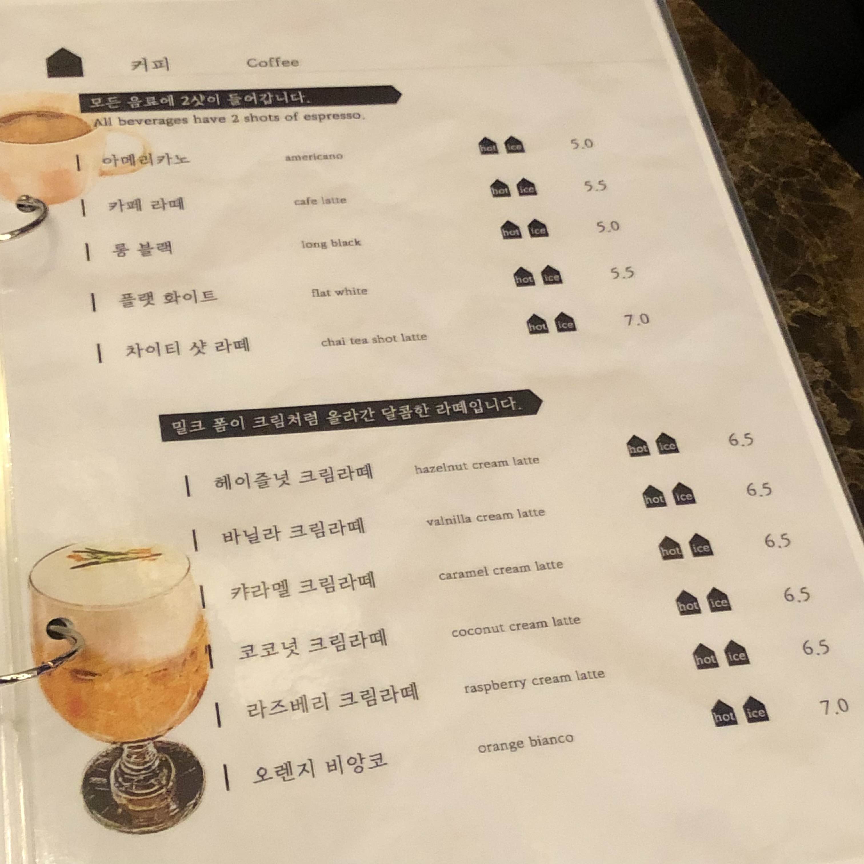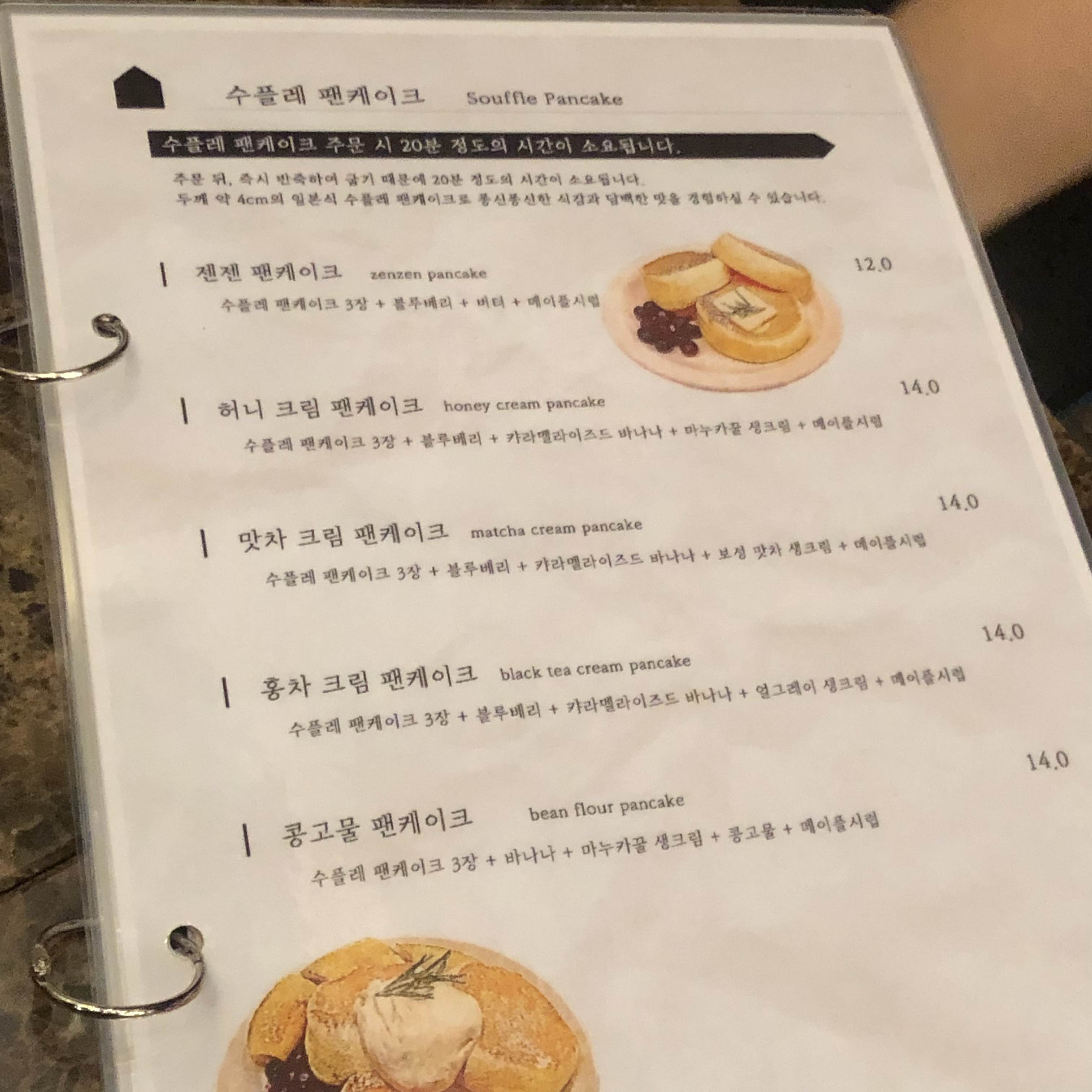 음료 각 하나 씩 고르고 수플레 팬케이크도 주문했습니다. 헤헷~