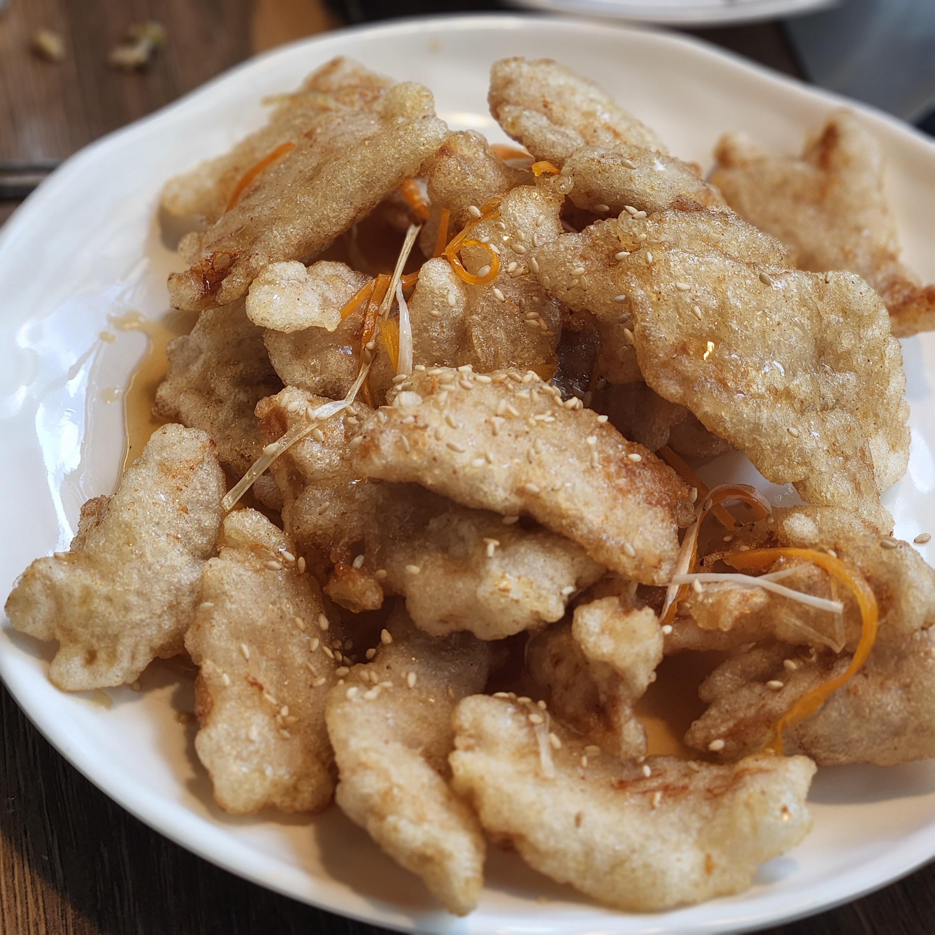 새콤새콤 맛있어요! 양꼬치집에서 꿔바로우 안시키면 섭하져.