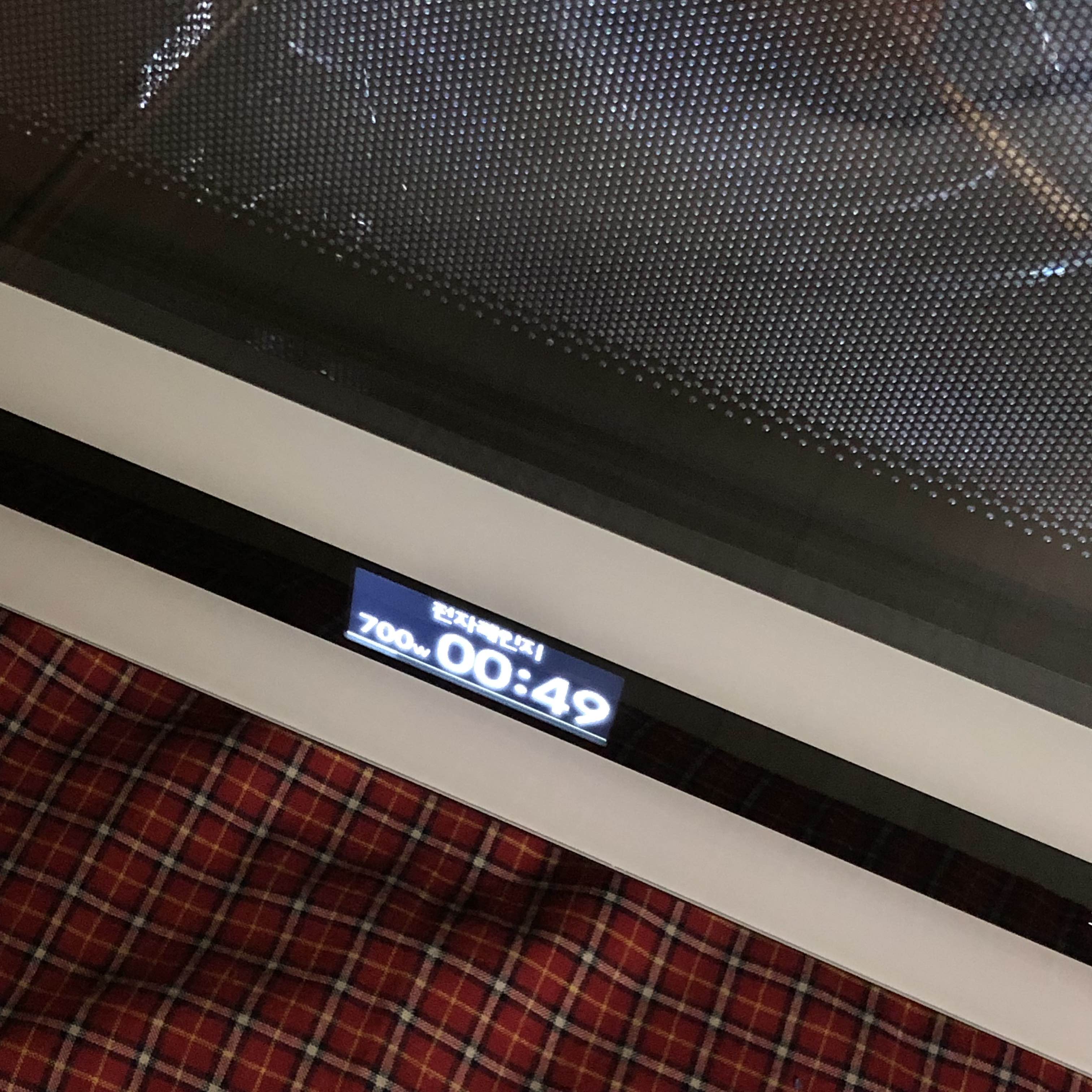전자레인지 기능으로 설정 후 1분 조리 시작했습니다.