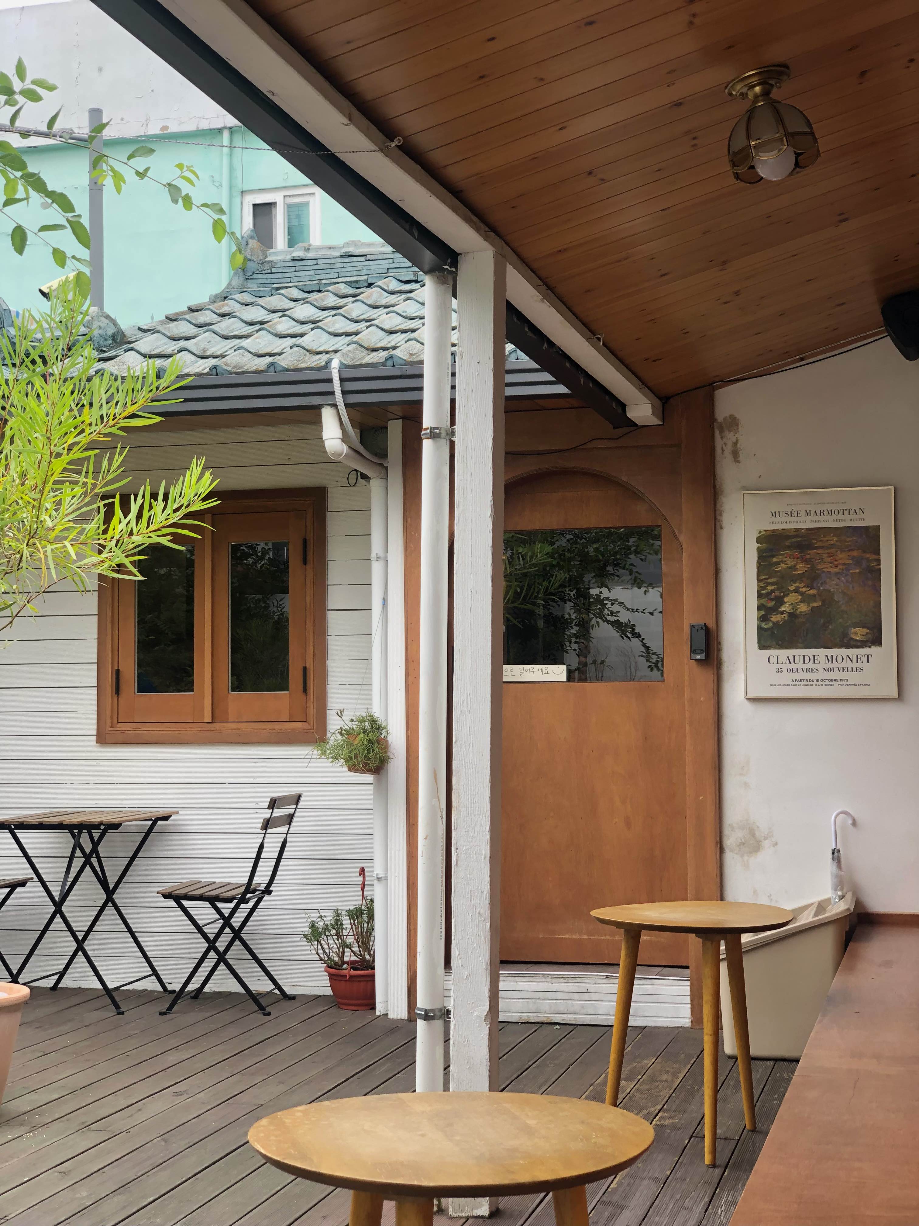 이렇게 나무 데크가 깔려있고 야외에도 앉을 수 있게 자리들이 있었어요.