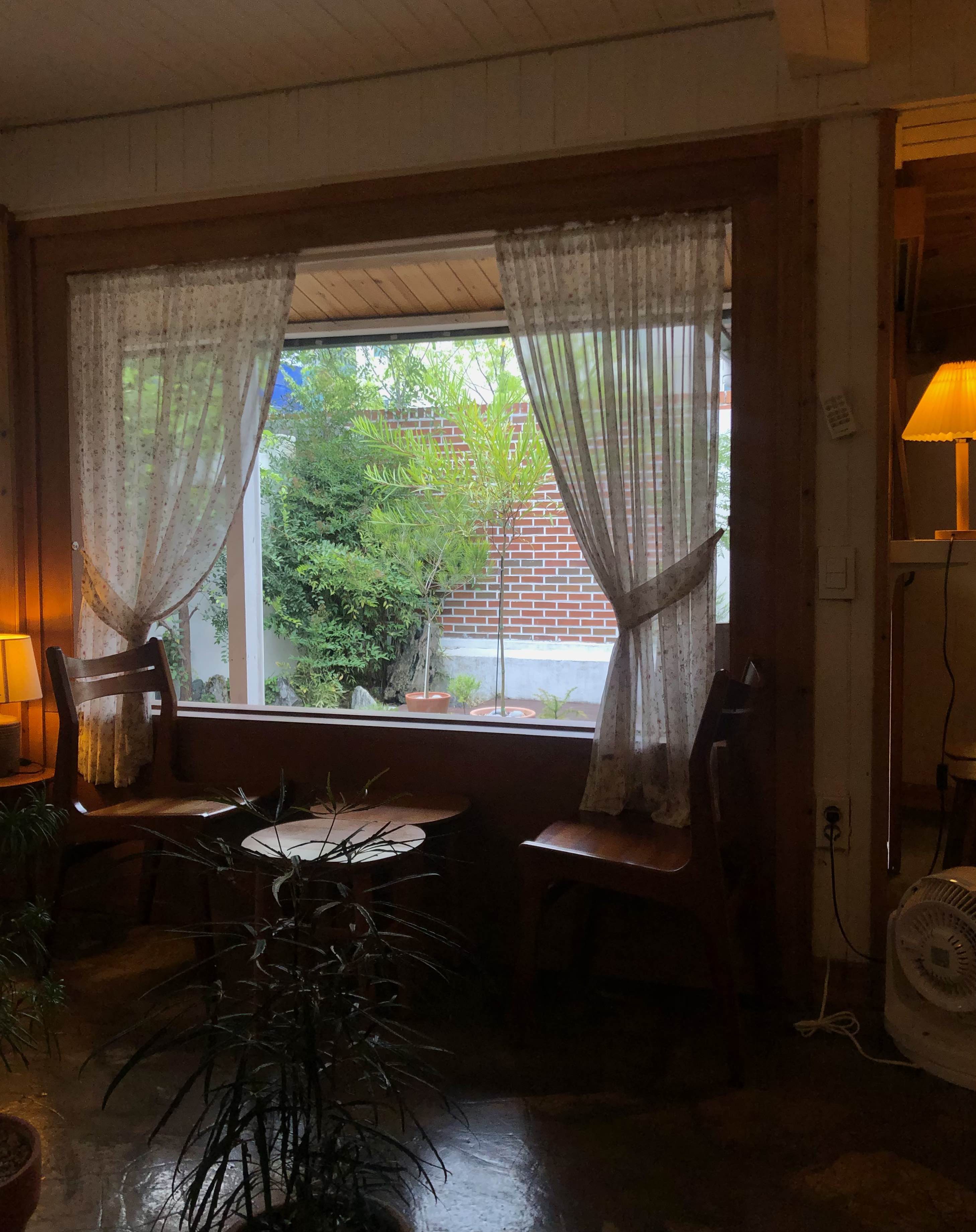 커튼도 예쁘고 창 밖으로 보이는 마당 전경도 예쁘고...