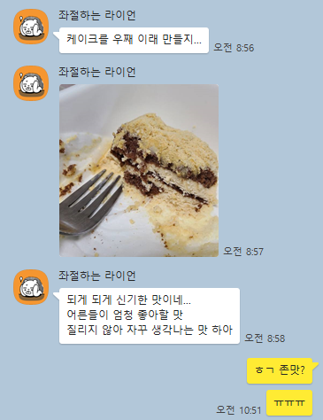 다음 날, 저도 포장해온 케이크 맛봤어여...