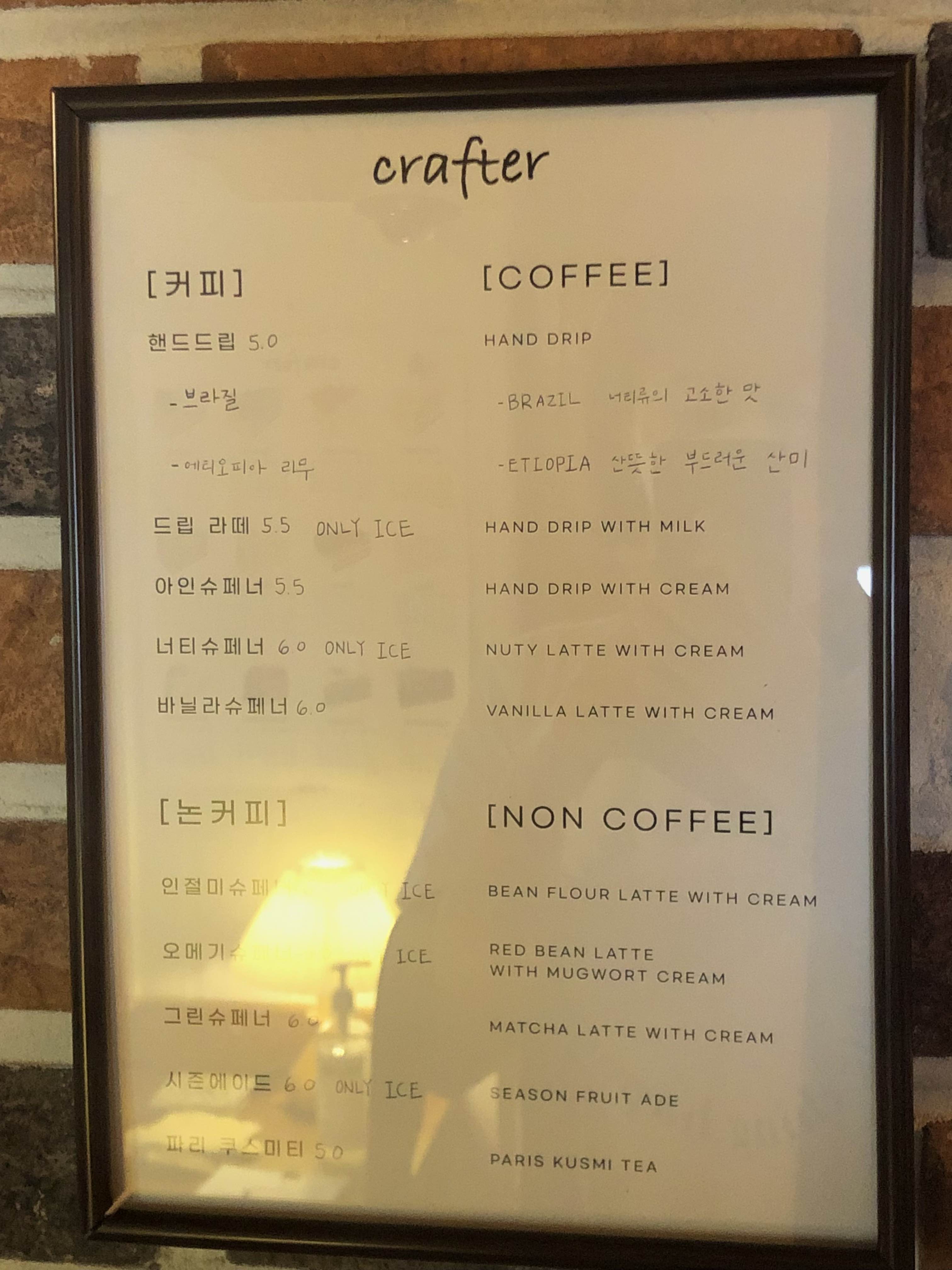 입구 들어가자마자 벽면에 걸려있던 크래프터의 메뉴판입니다.