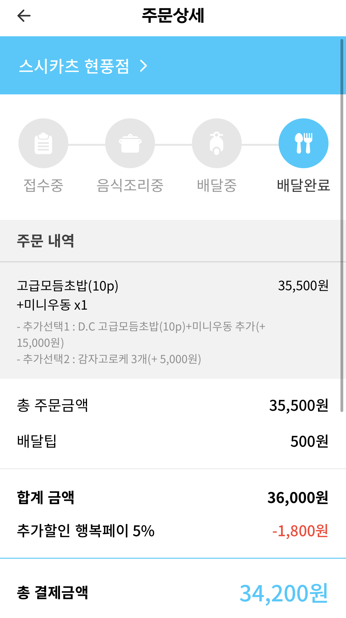 대구로 어플로 주문하면 행복페이 추가할인 5% 받을 수 있어서 참 좋아요~!