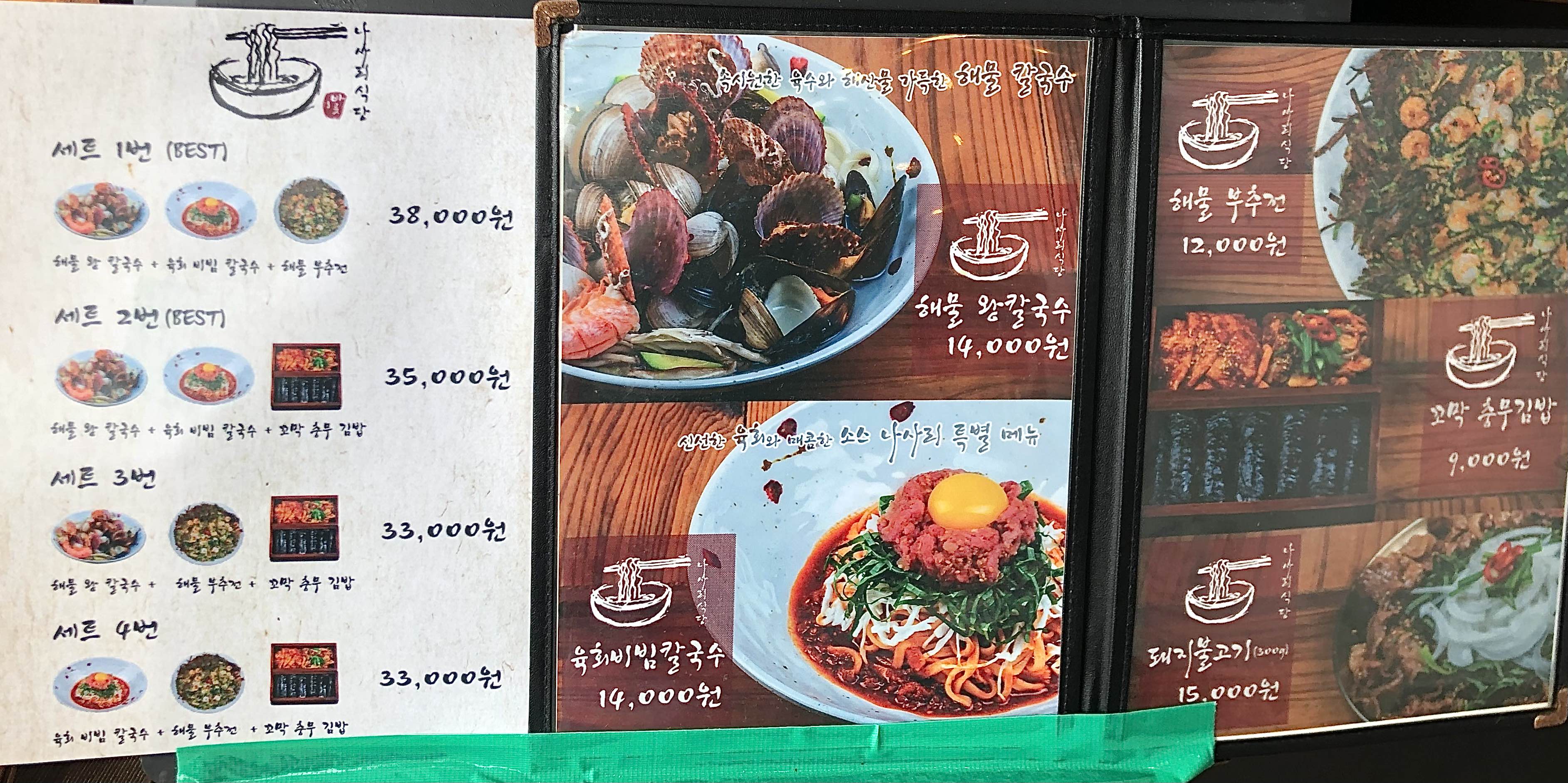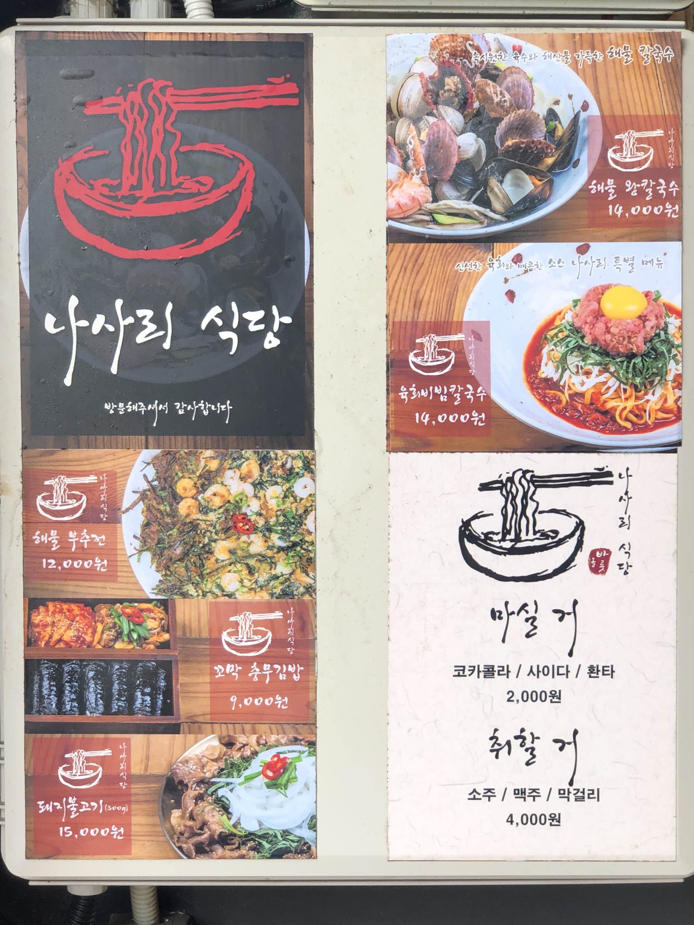 나사리식당의 메뉴판입니다.