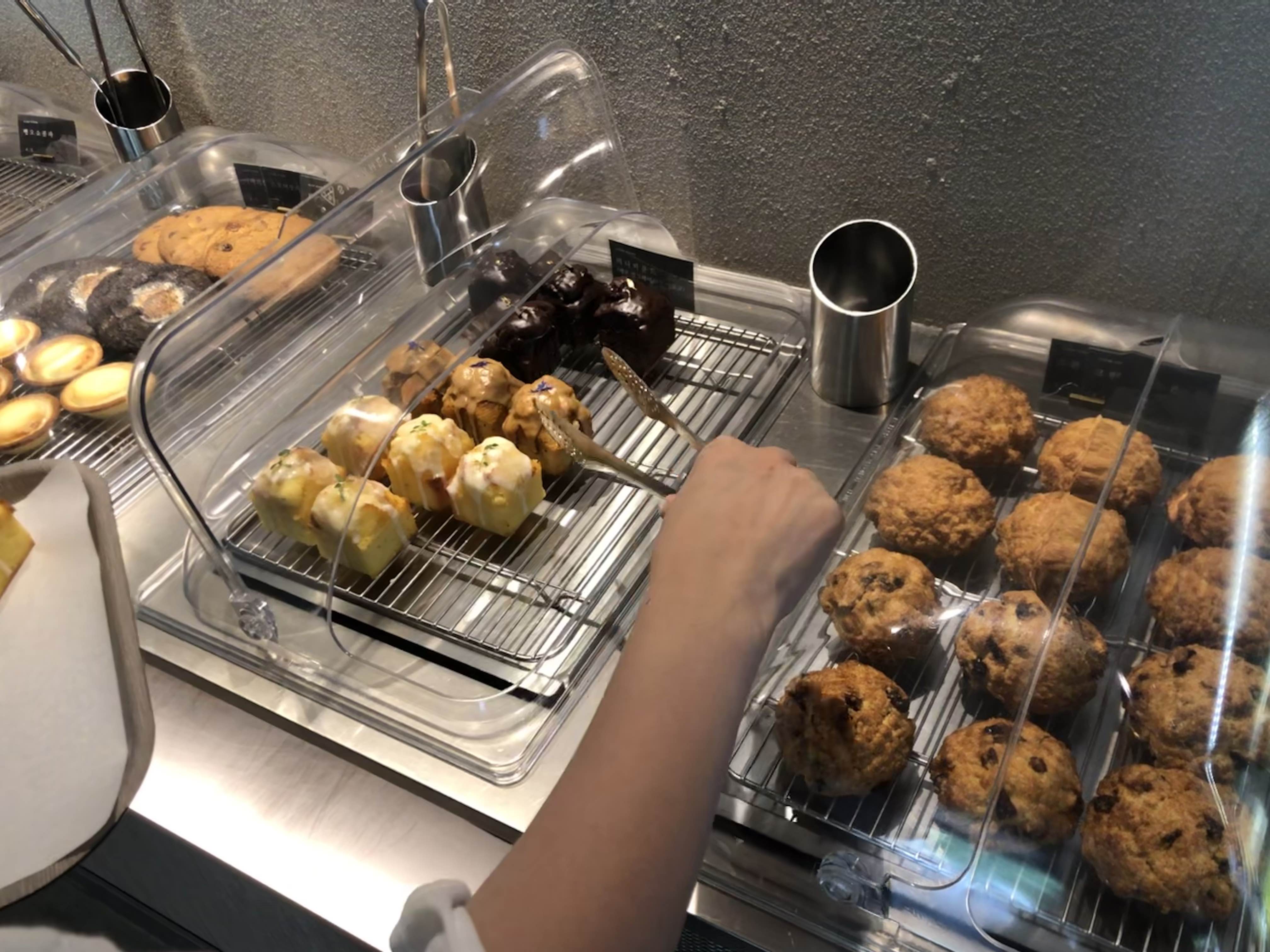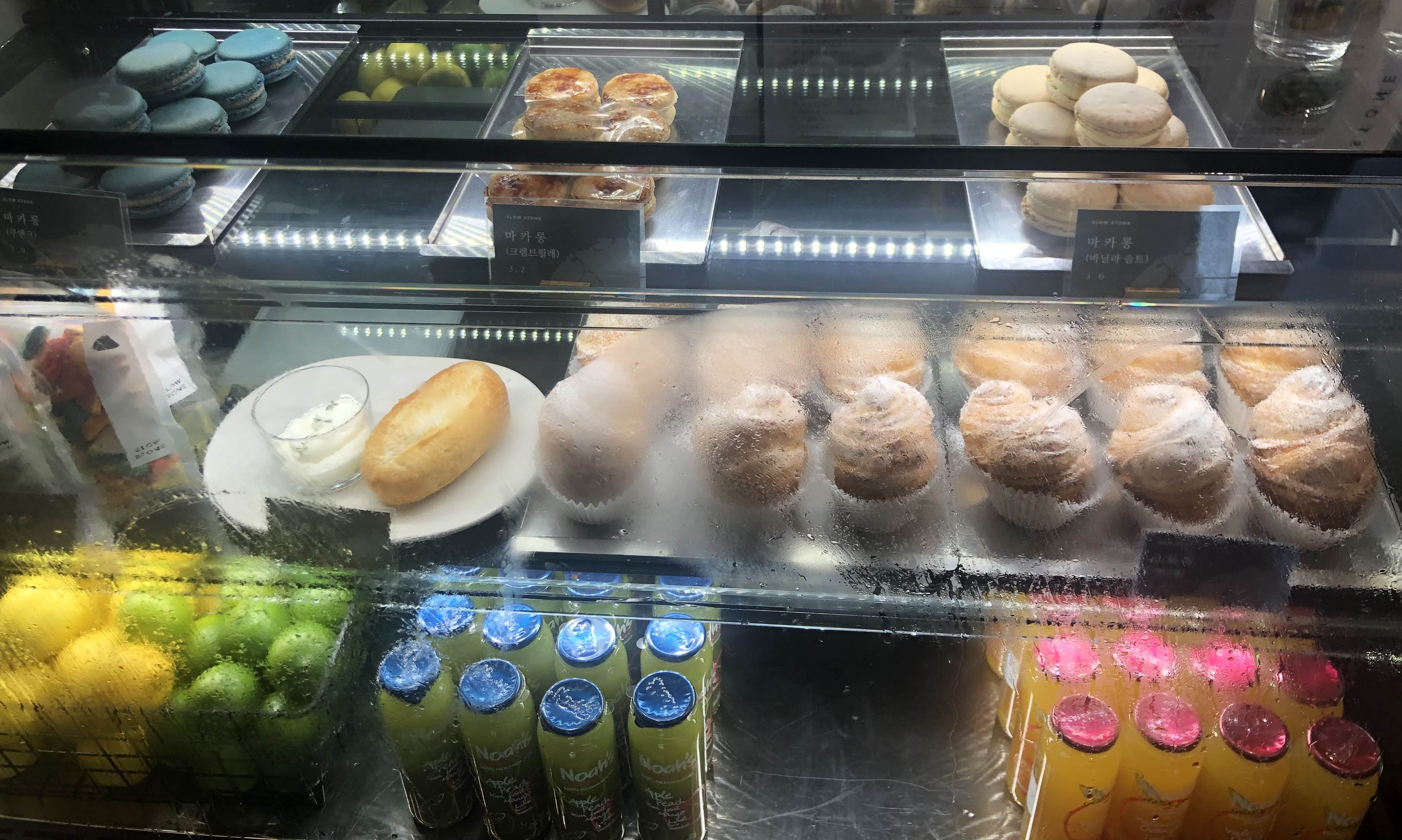 쇼케이스에도 마카롱 등 먹거리들이 꽤 있는 모습