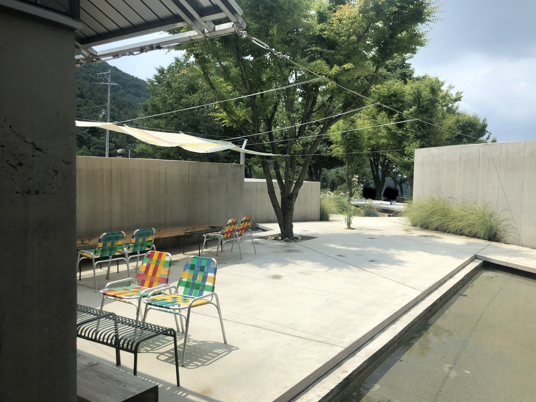 컬러풀한 의자가 있는 야외석