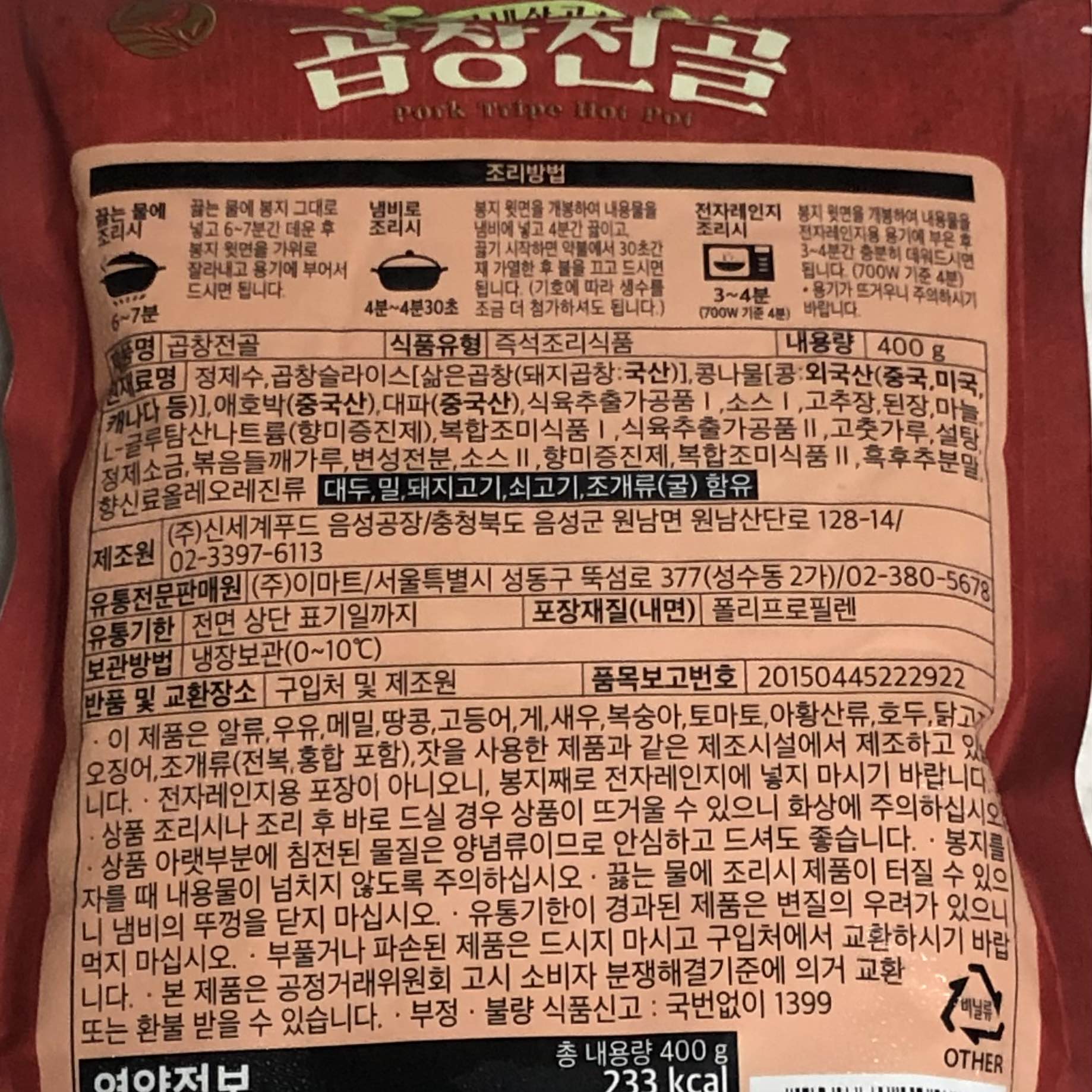 곱창전골이 생각날때 참 쉽고 저렴하게 맛볼 수 있어서 구웃~