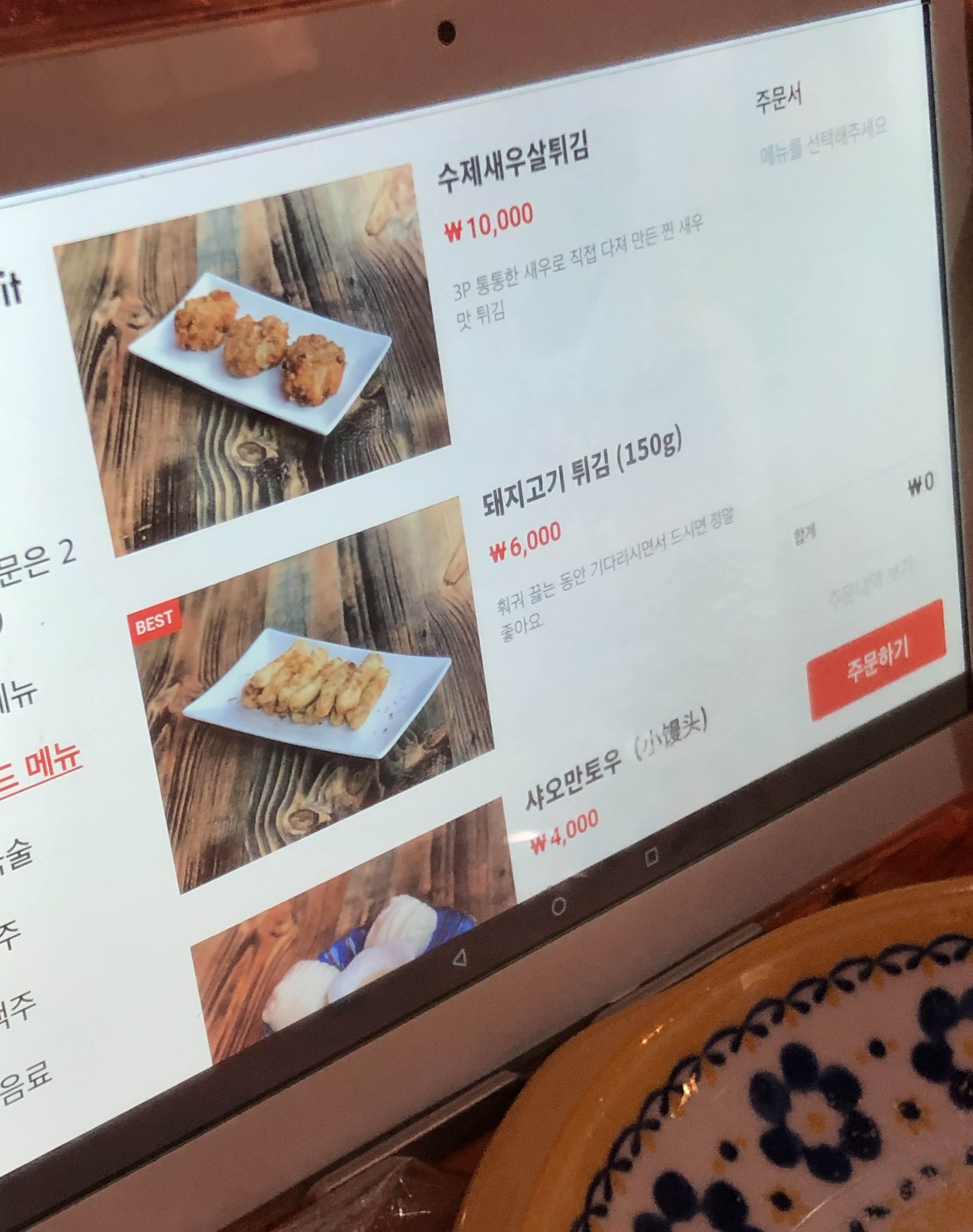 패드로 메뉴 사진이랑 설명을 보고 바로 주문이 가능하니 매우 편함.