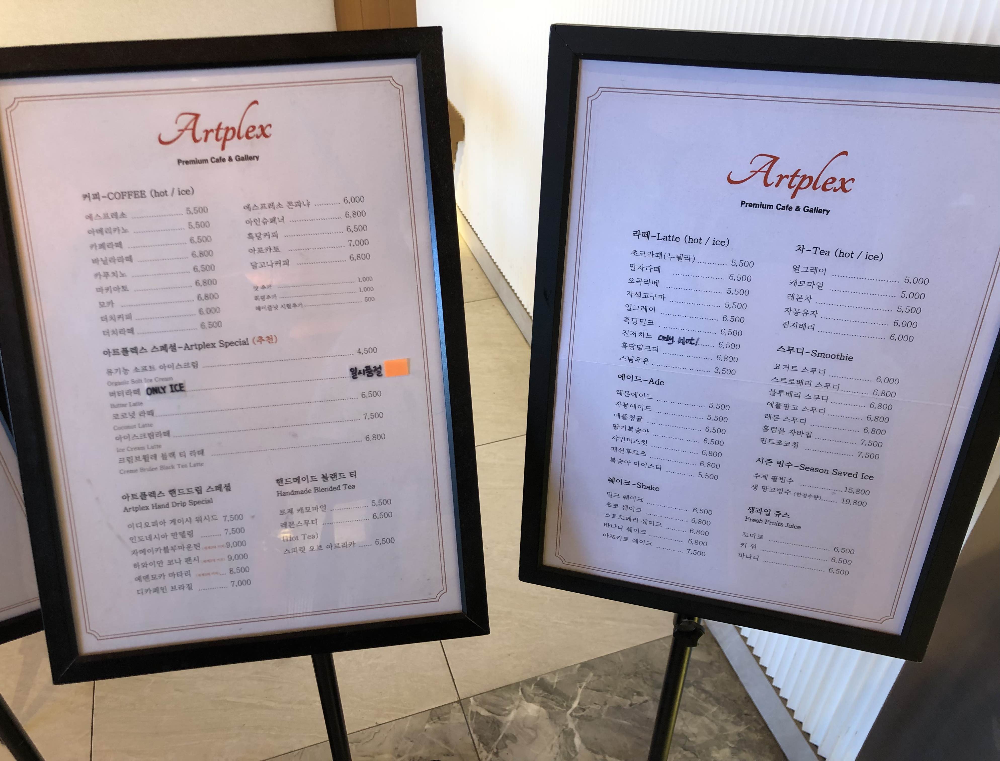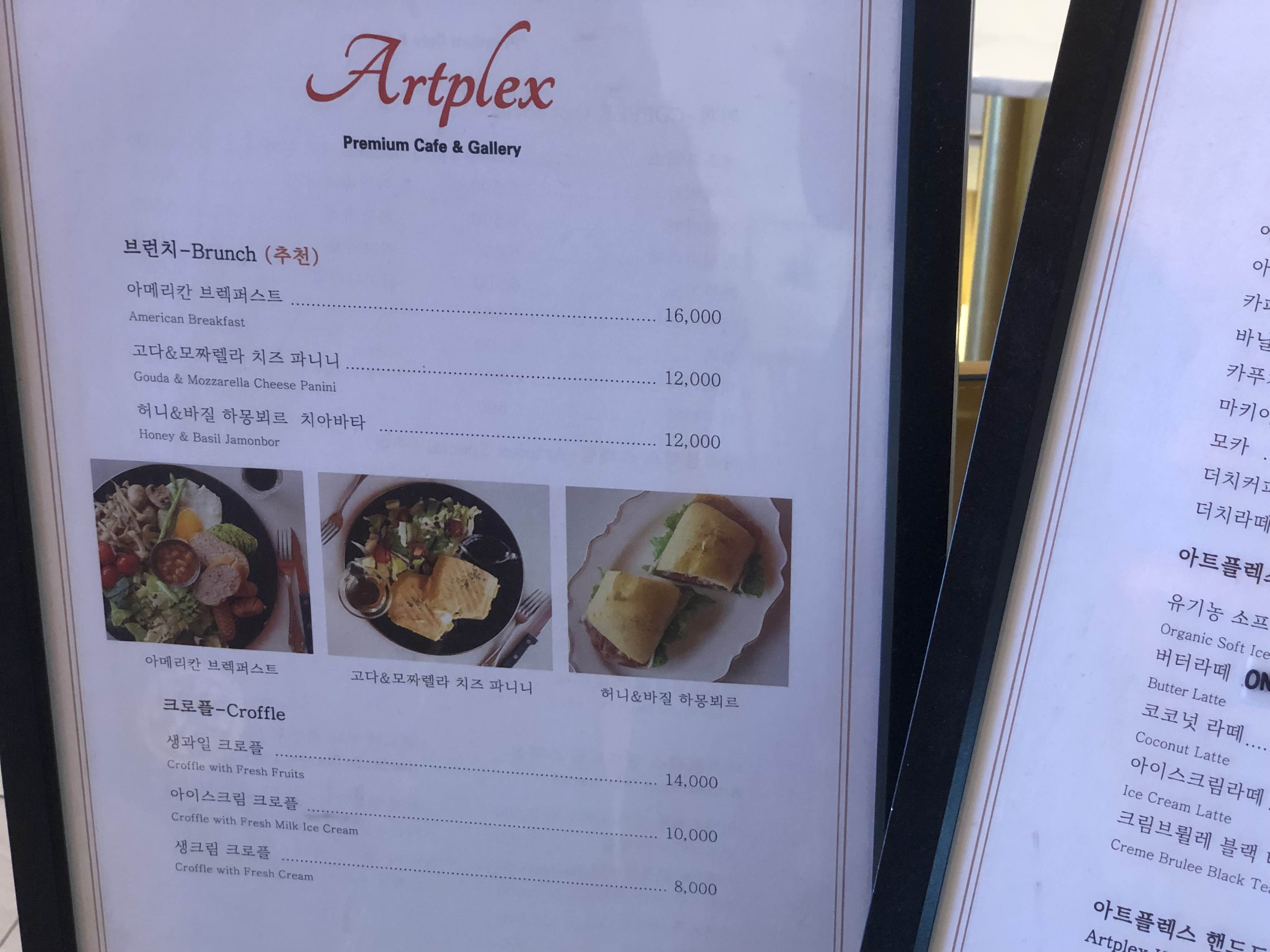 그리고 메뉴판 아트플렉스 글자 밑에 떡하니 갤러리 라고 적혀있는데