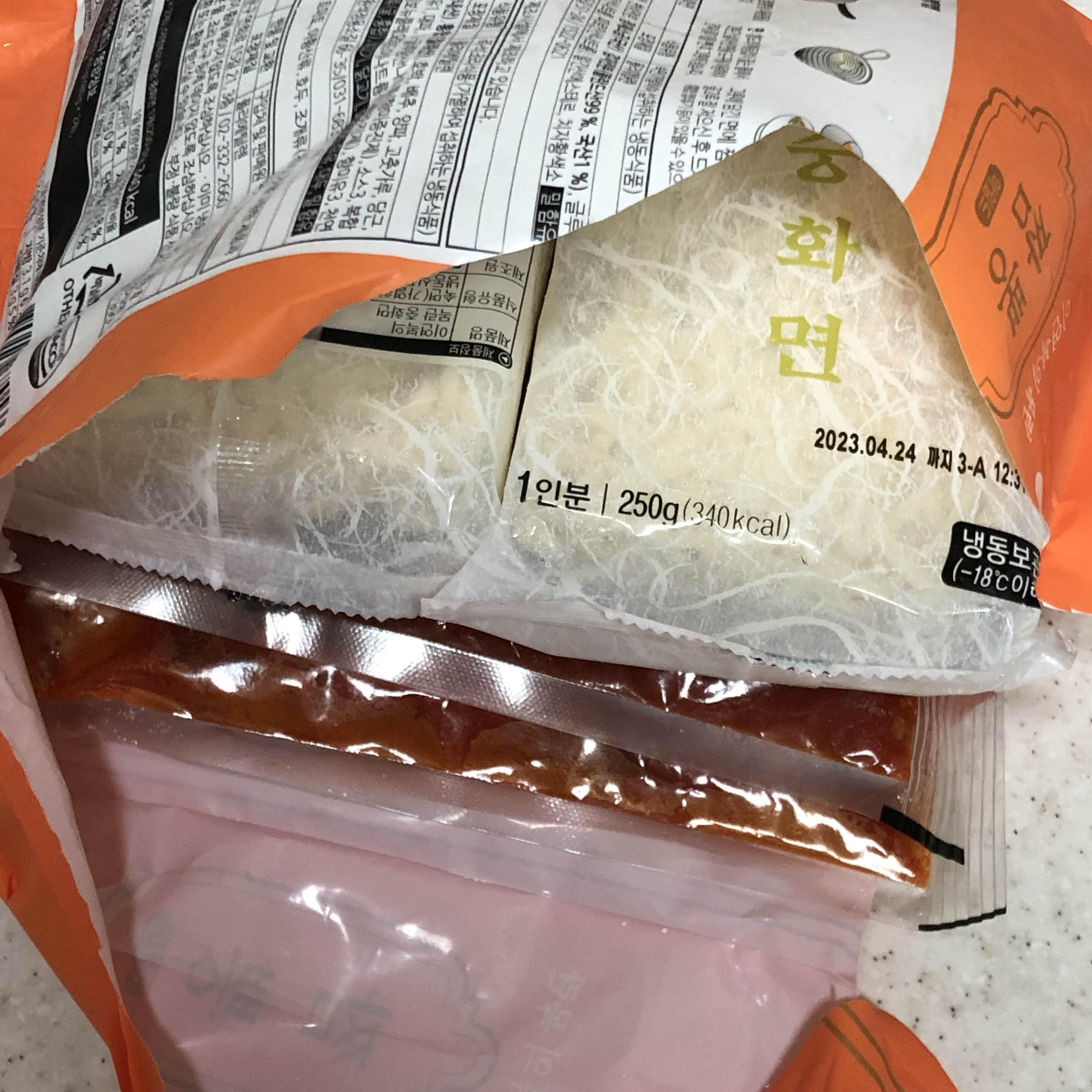 한 패키지 안에 2인분이 들어있구요 -18℃ 이하의 냉동보관이에요.