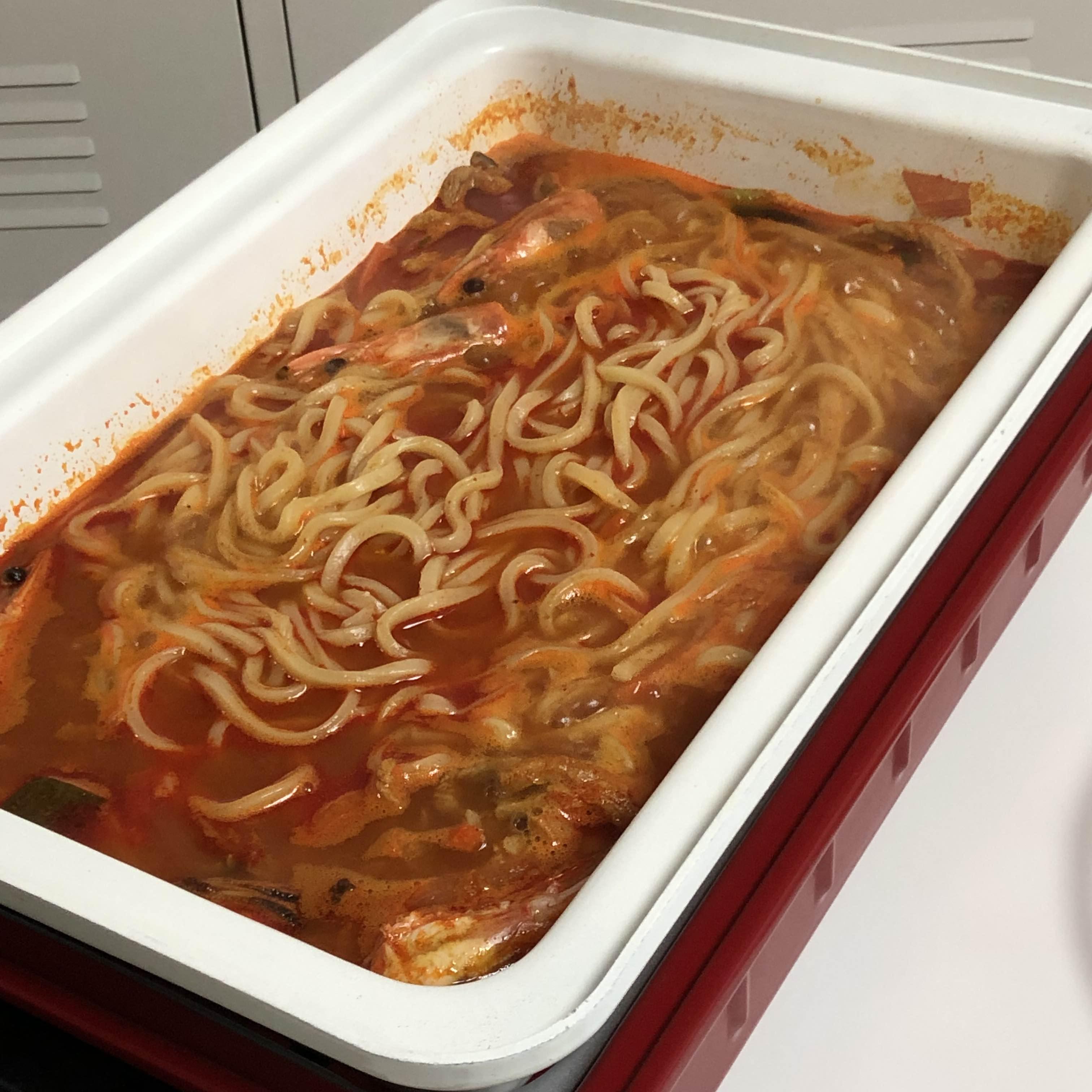 라면 대신 집에 있던 목란 짬뽕 1인분 챙겨가서 먹었어요.