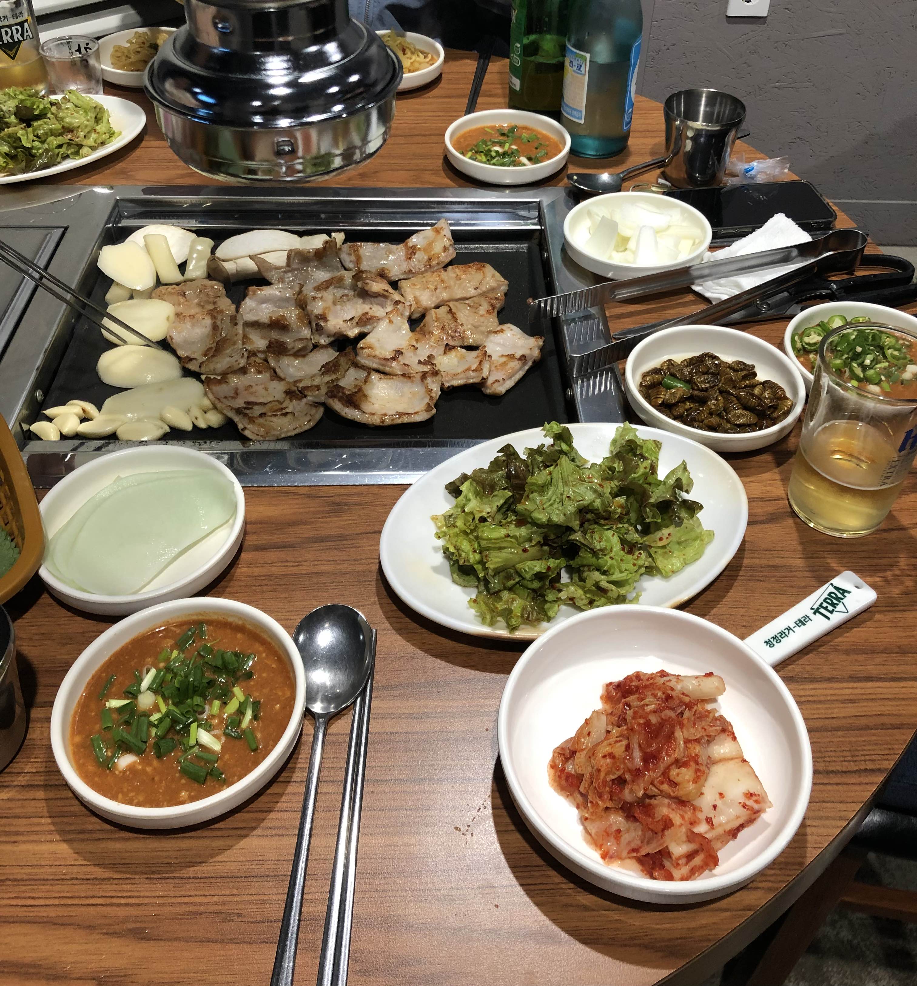 불판이 아주 가득가득 찼어요.