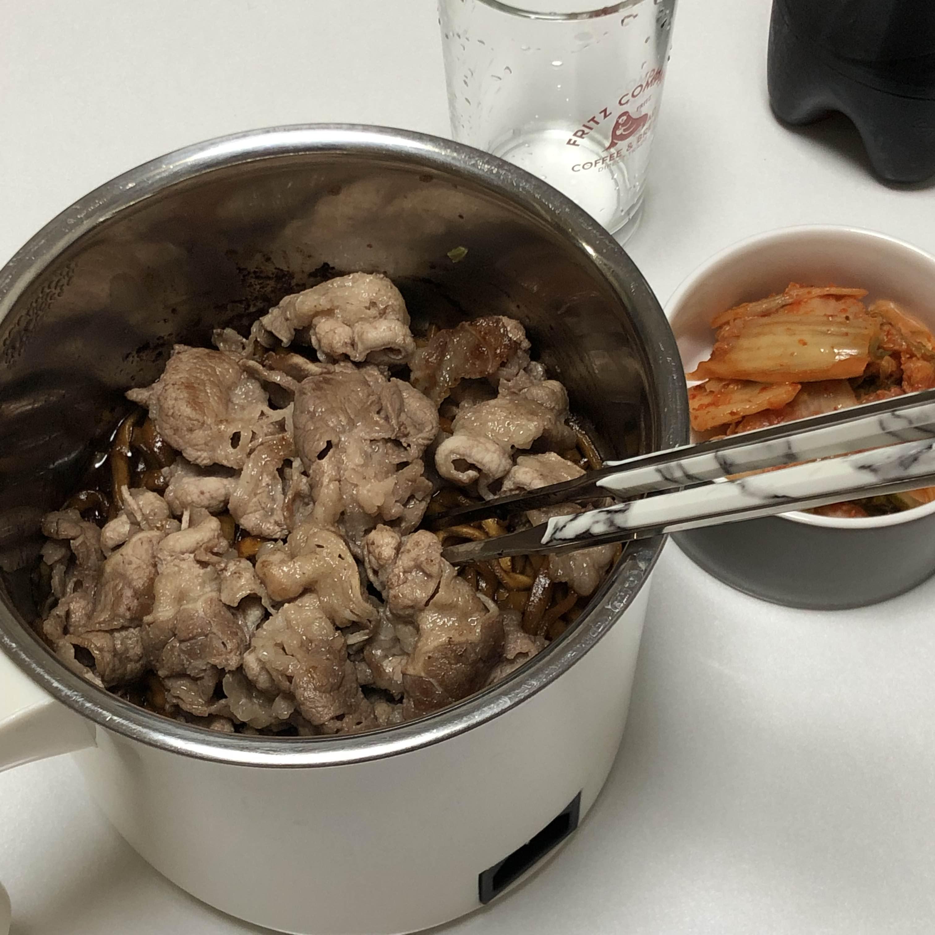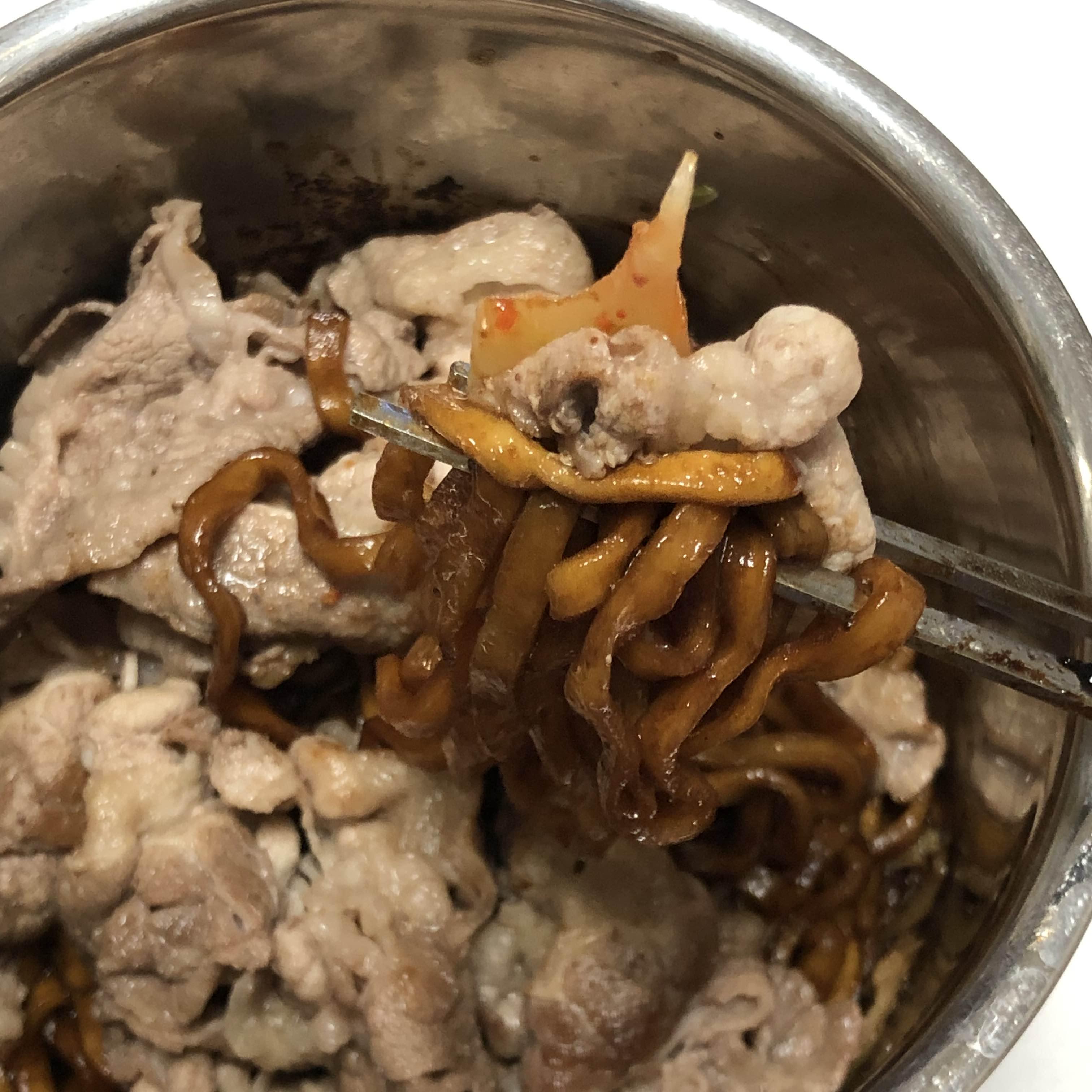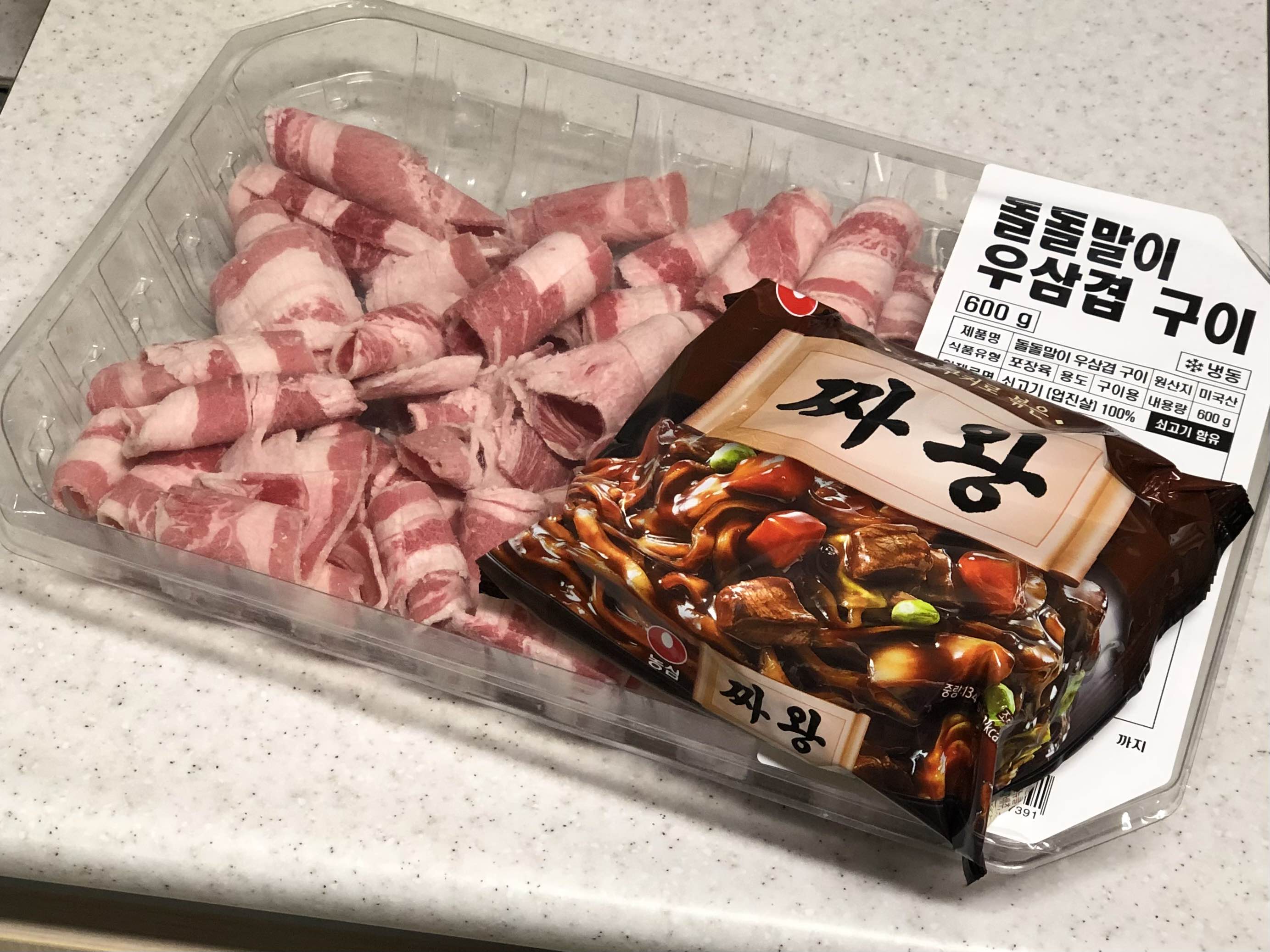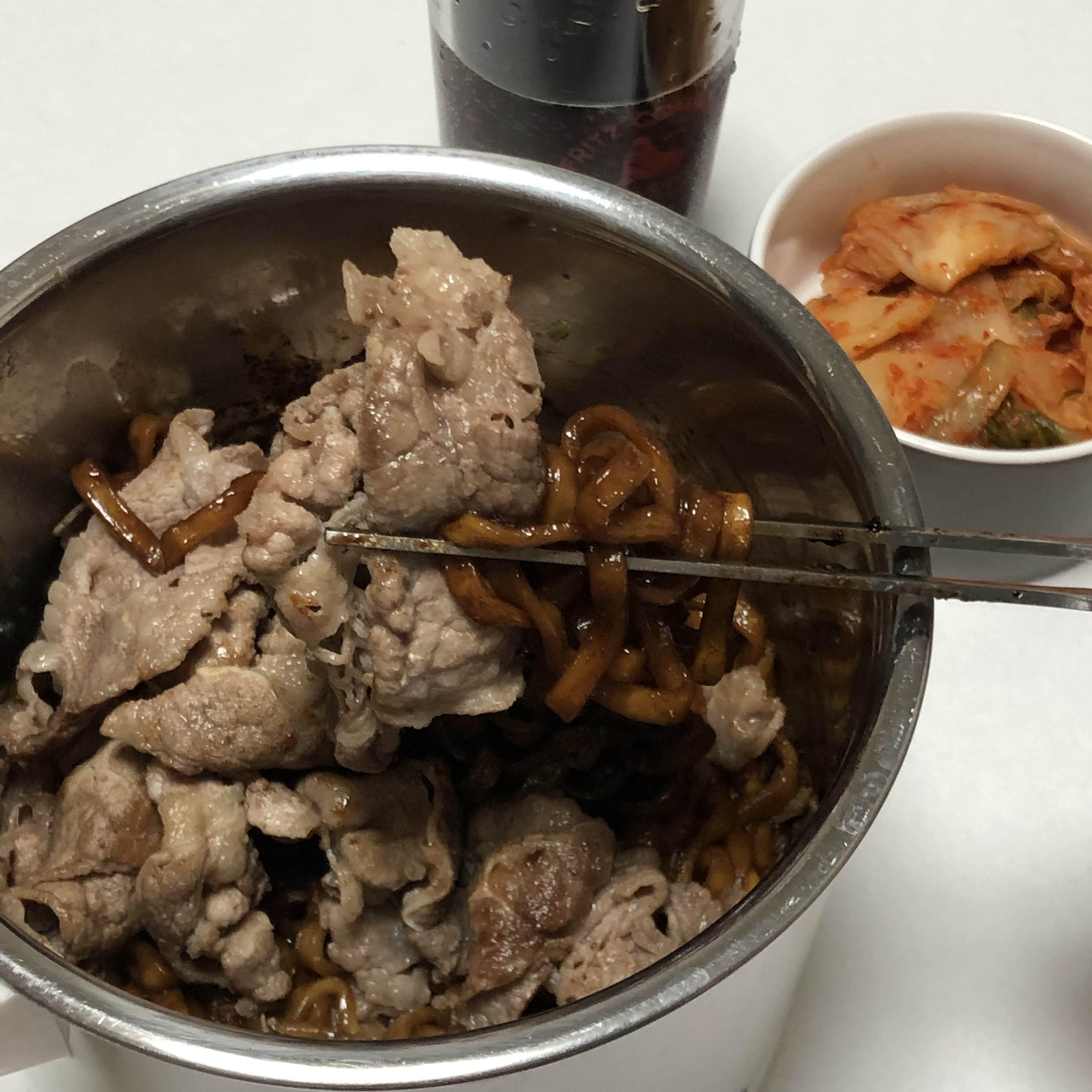 짜파게티에 고기 올려서 먹으면 괜찮겠단 생각이 문득 들었어요.