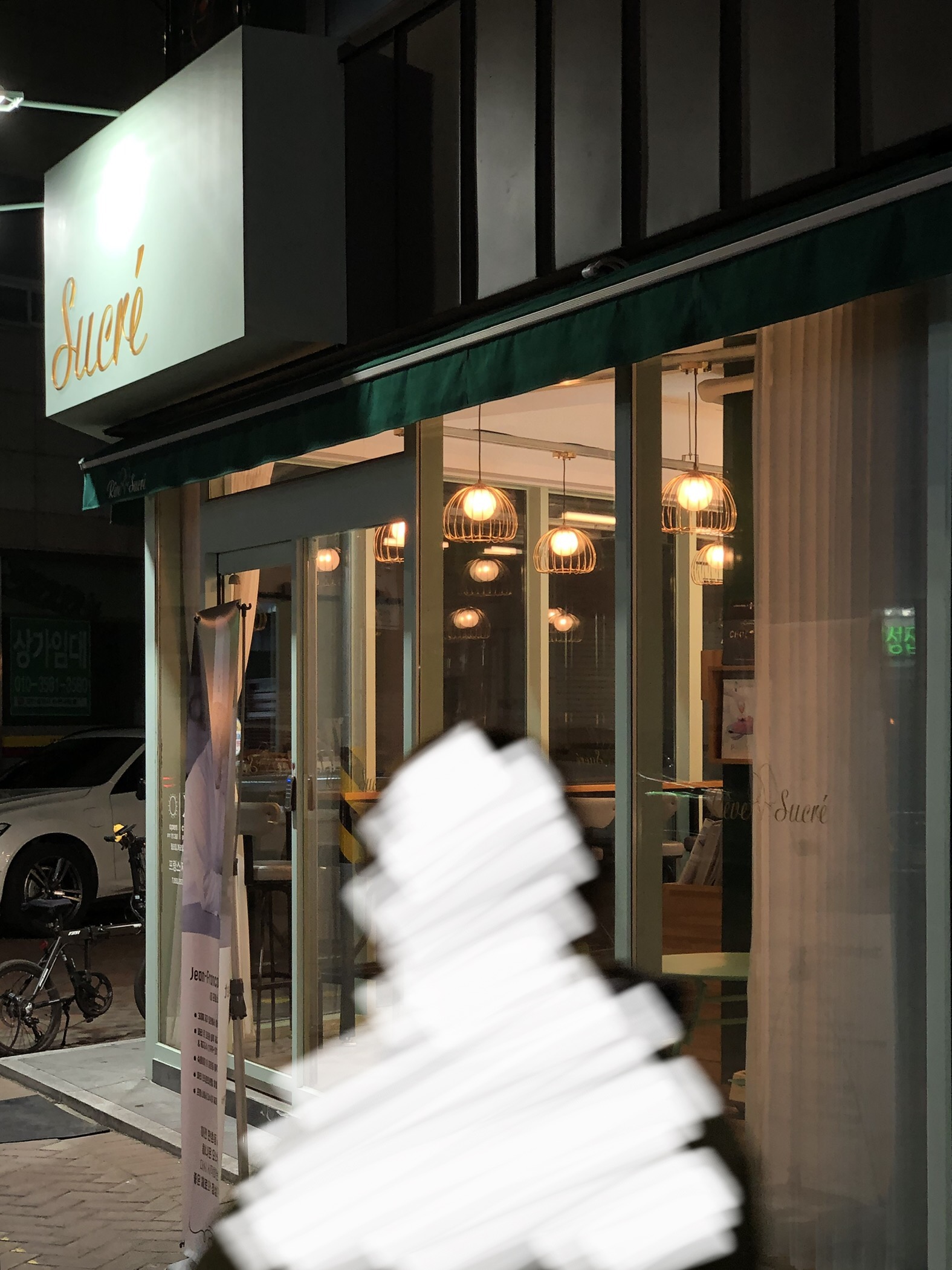 어두운 저녁 거리에 따뜻한 조명빛이 눈에 띄는 가게였어요.