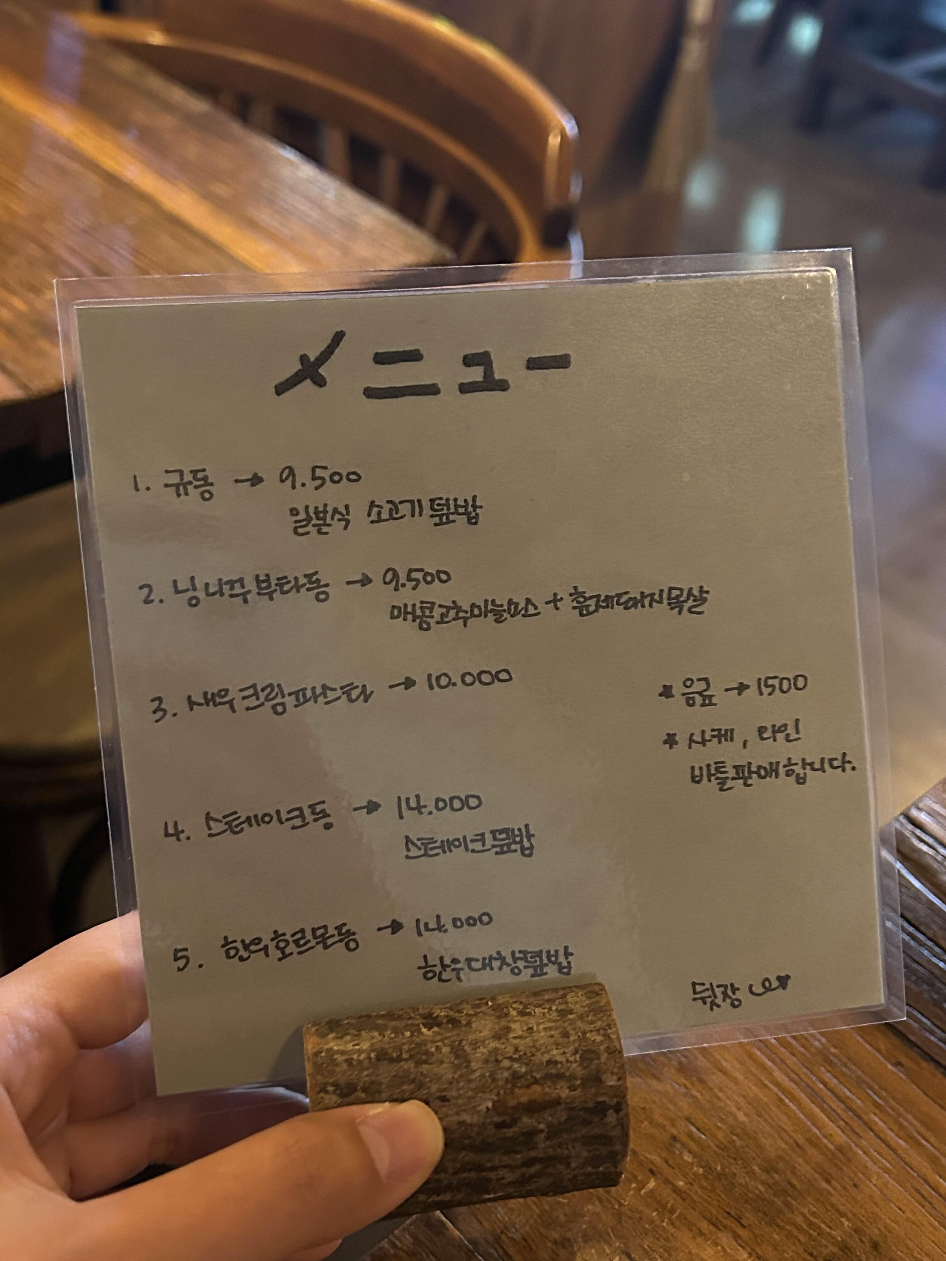 규동 / 닝니꾸부타동 / 새우크림파스타 / 스테이크동 / 한우호르몬동