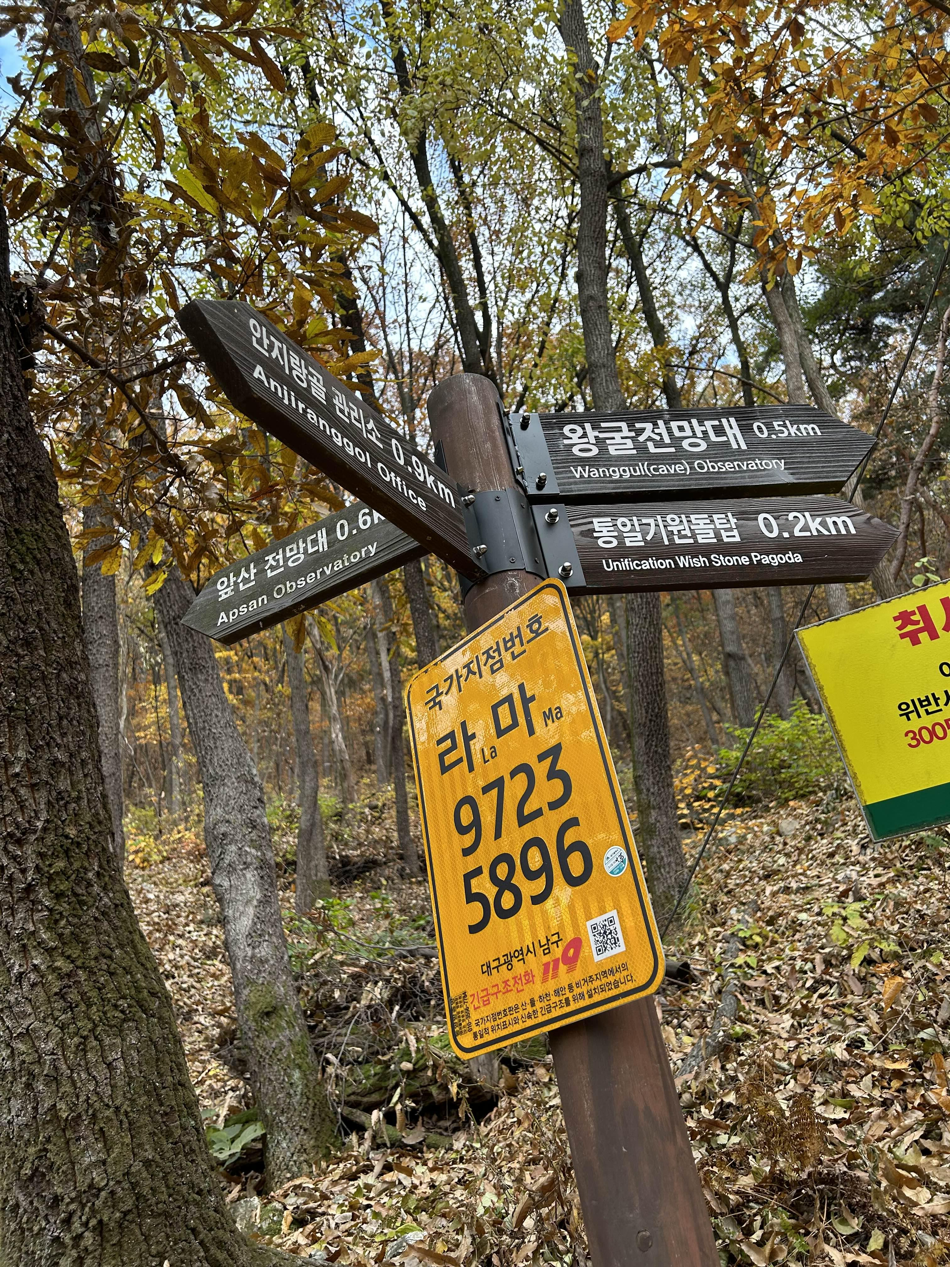 요기서 앞으로 갈 길이 앞산전망대랑 왕굴전망대로 갈라짐.
