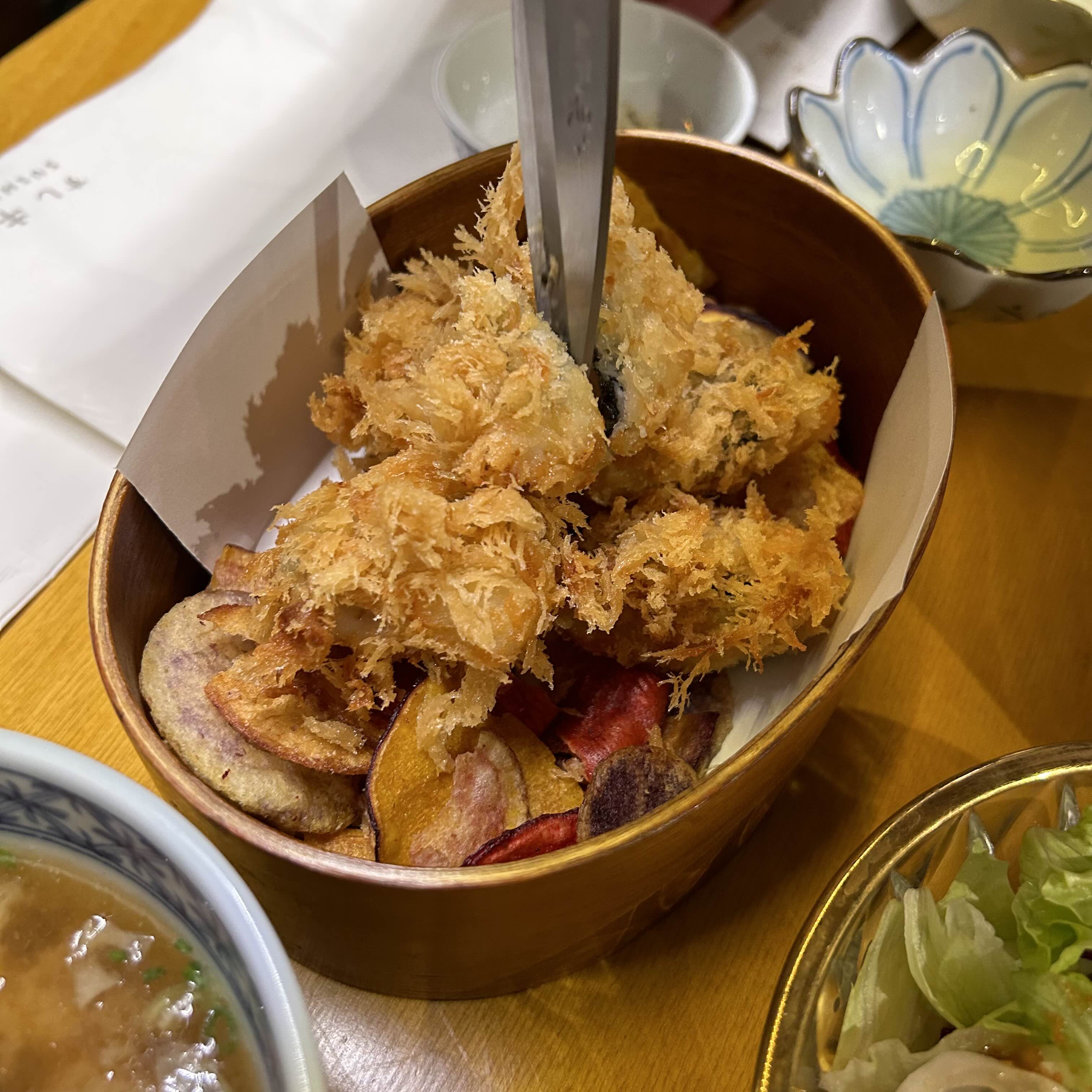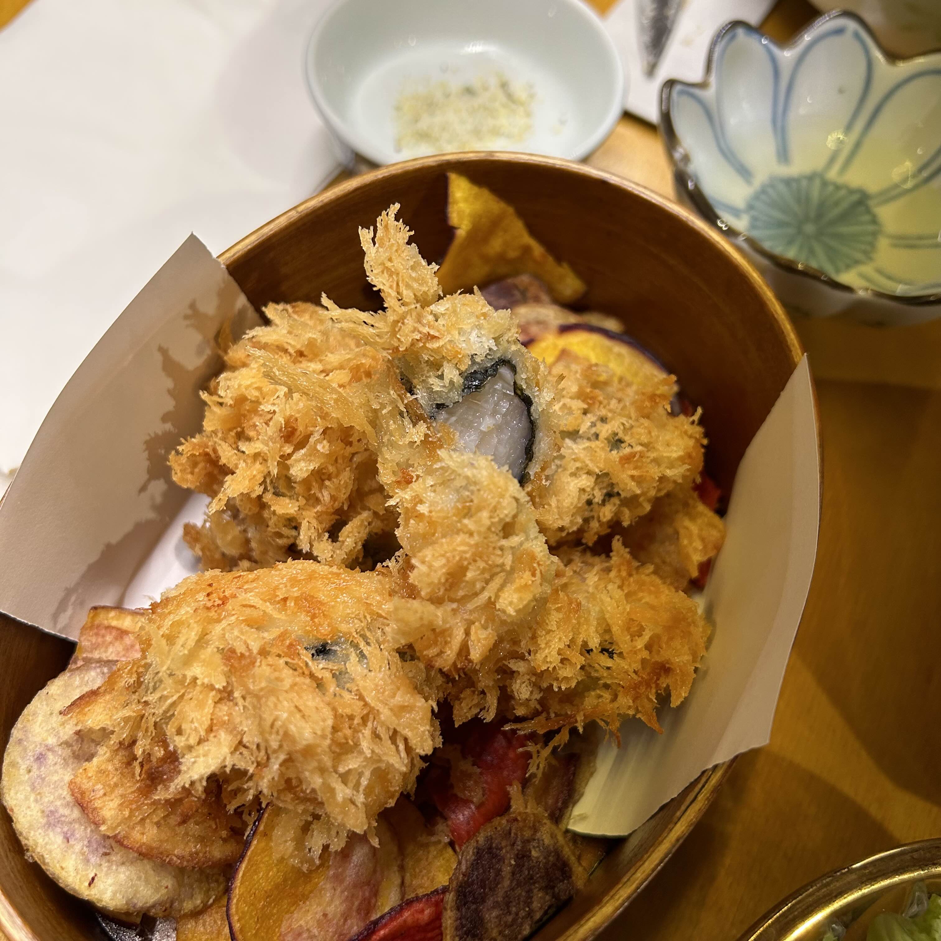 가리비튀김 그리고 밑에는 야채칩인데요,
