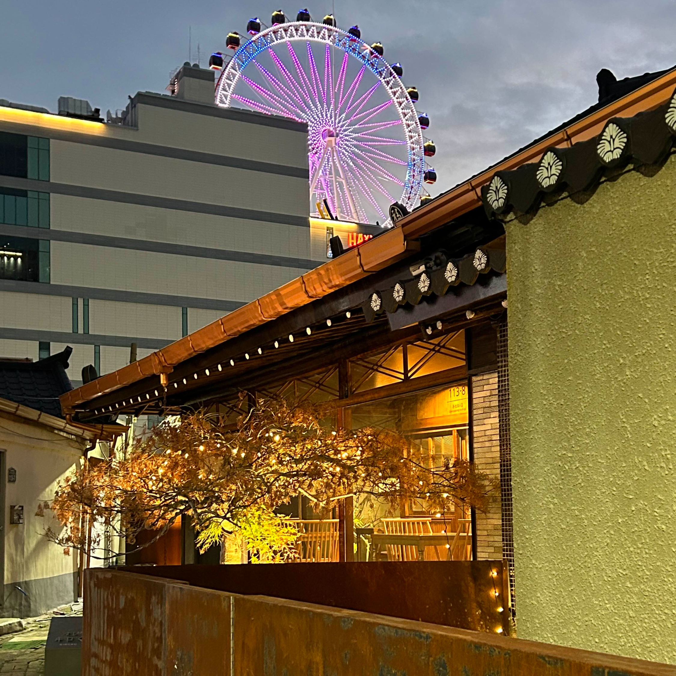 골목에 들어서자마자 따뜻한 가게 조명과 관람차 뷰까지 넘 예쁜,,,