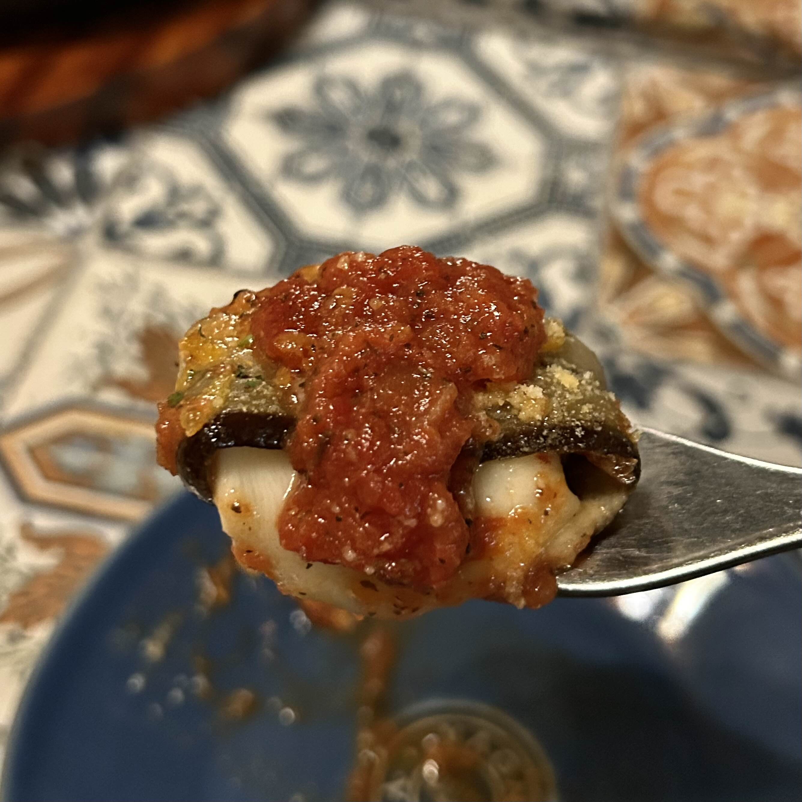 가지말이 속에 치즈가 듬뿍 들어있는데 토마토소스와 환상 궁합!
