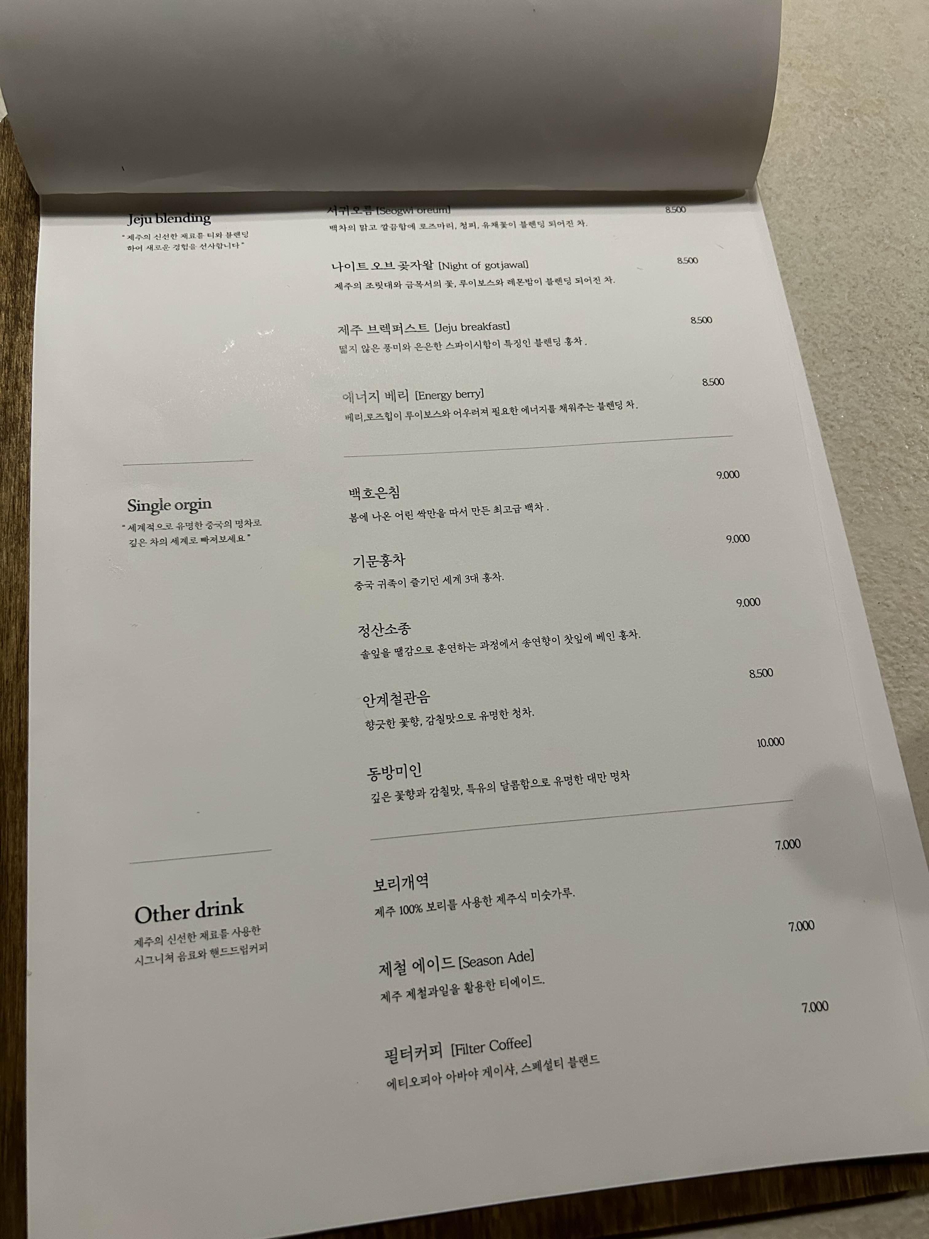 미숫가루, 제철 과일 에이드, 필터 커피도 있어요.