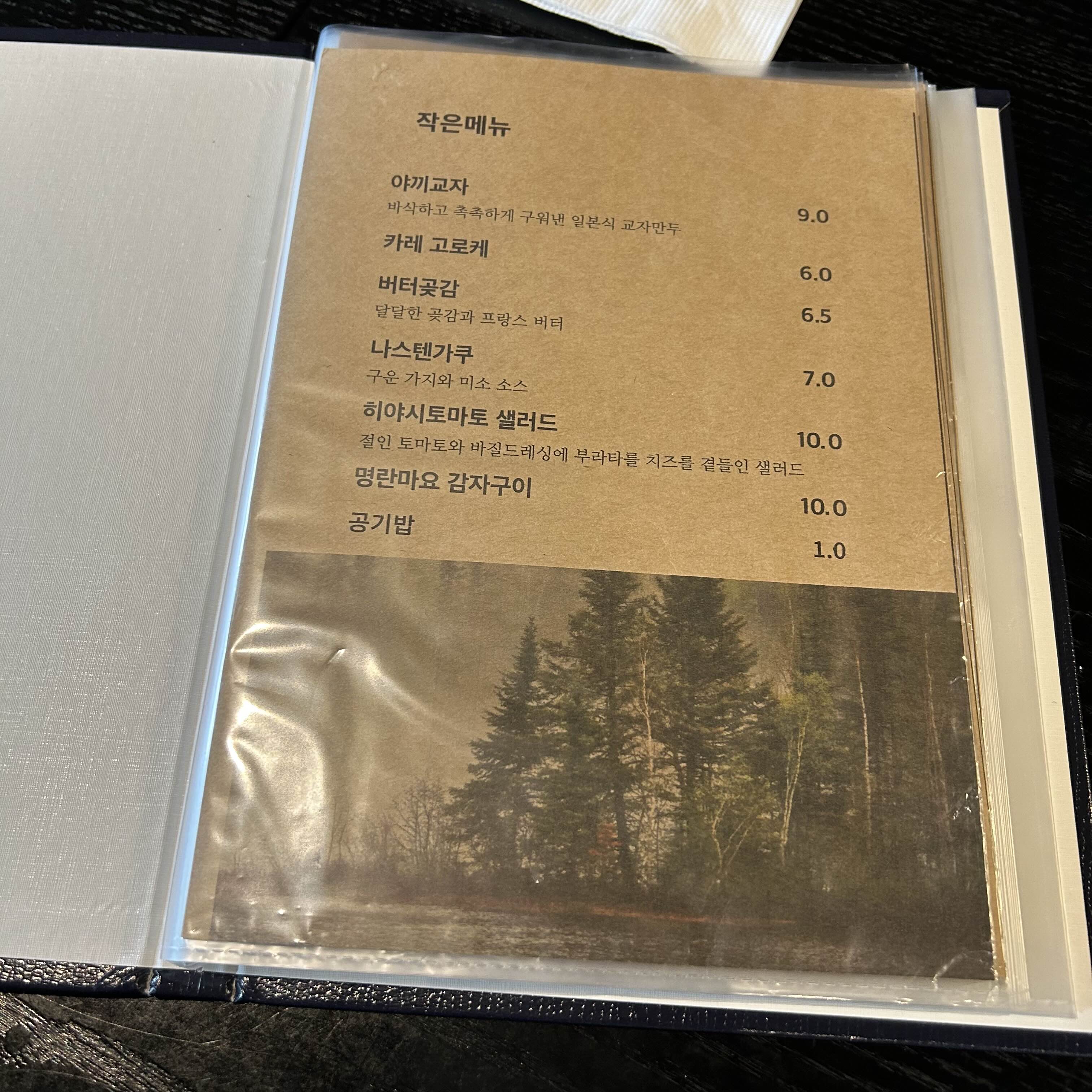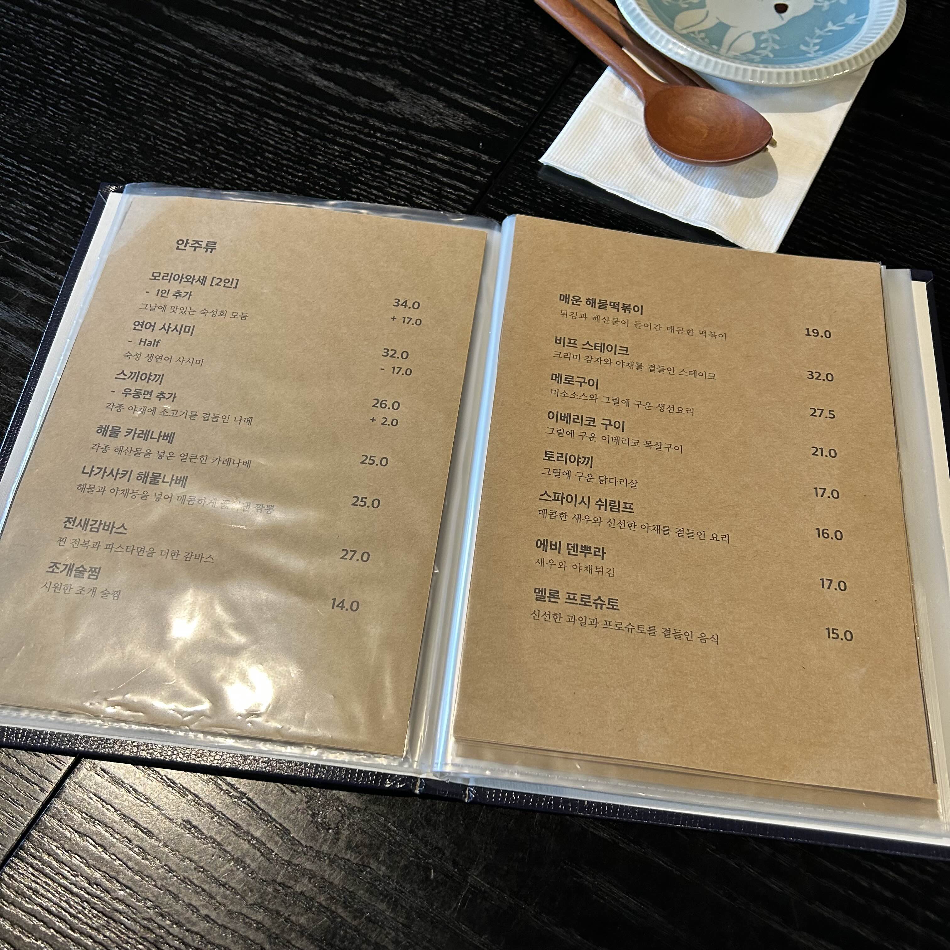 다시 방문하니 메뉴판이 클리어화일에 보기 좋게 정리 되어있길래
