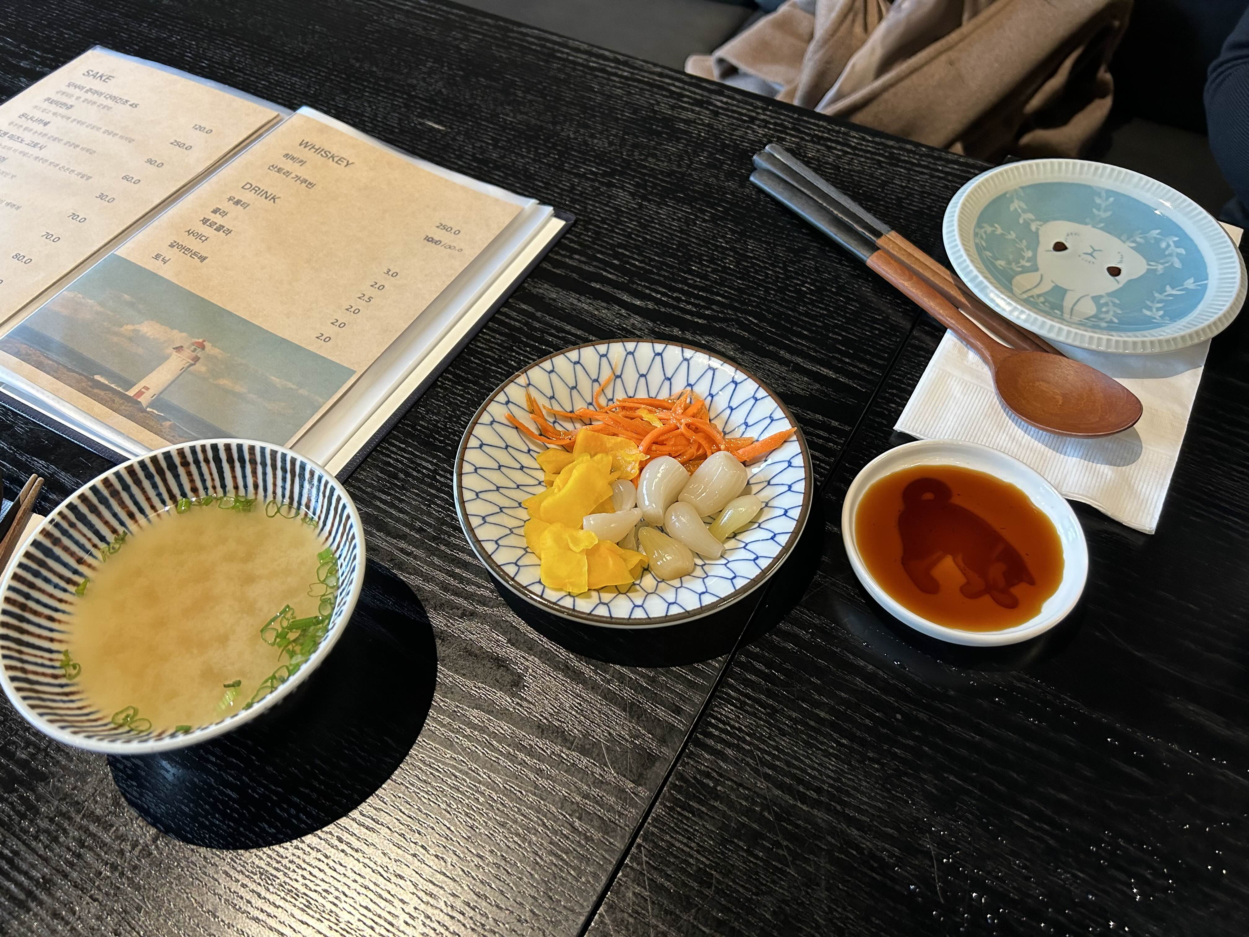 미소된장국 호록호록하며 음식을 기둘 중!