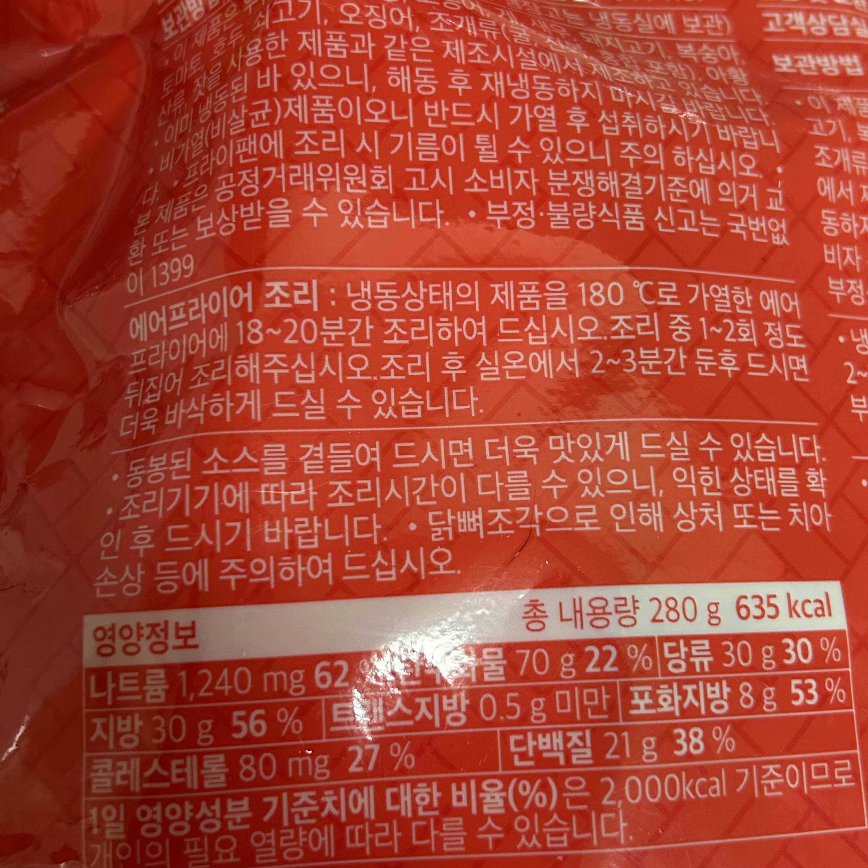냉동상태의 제품을 180℃로 가열한 에프에 18~20분간 조리