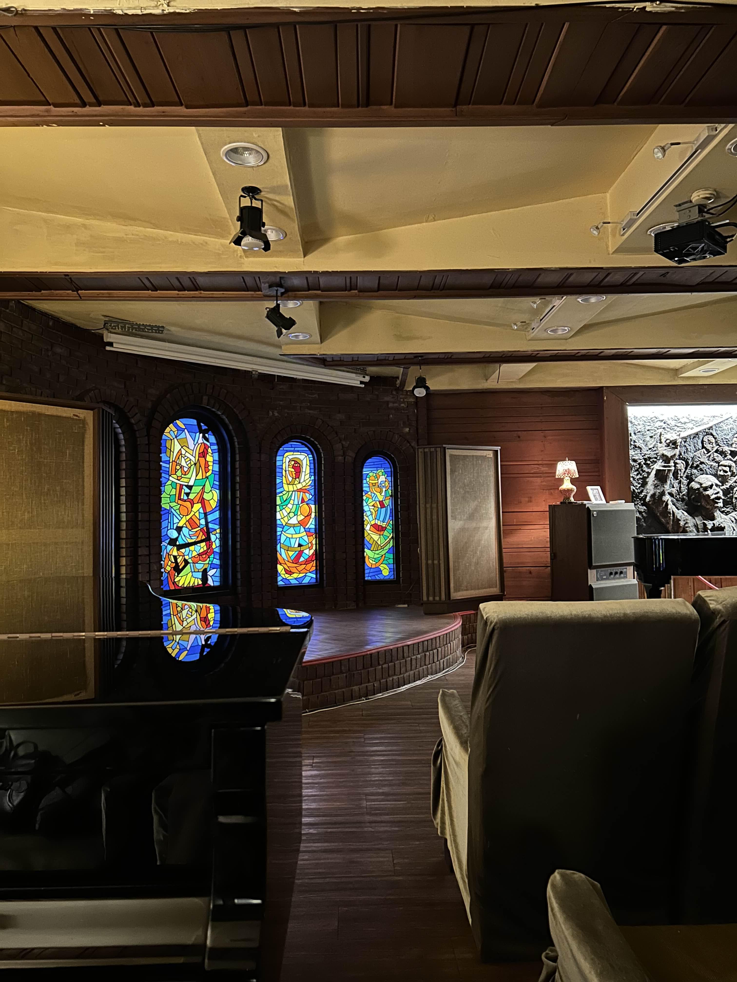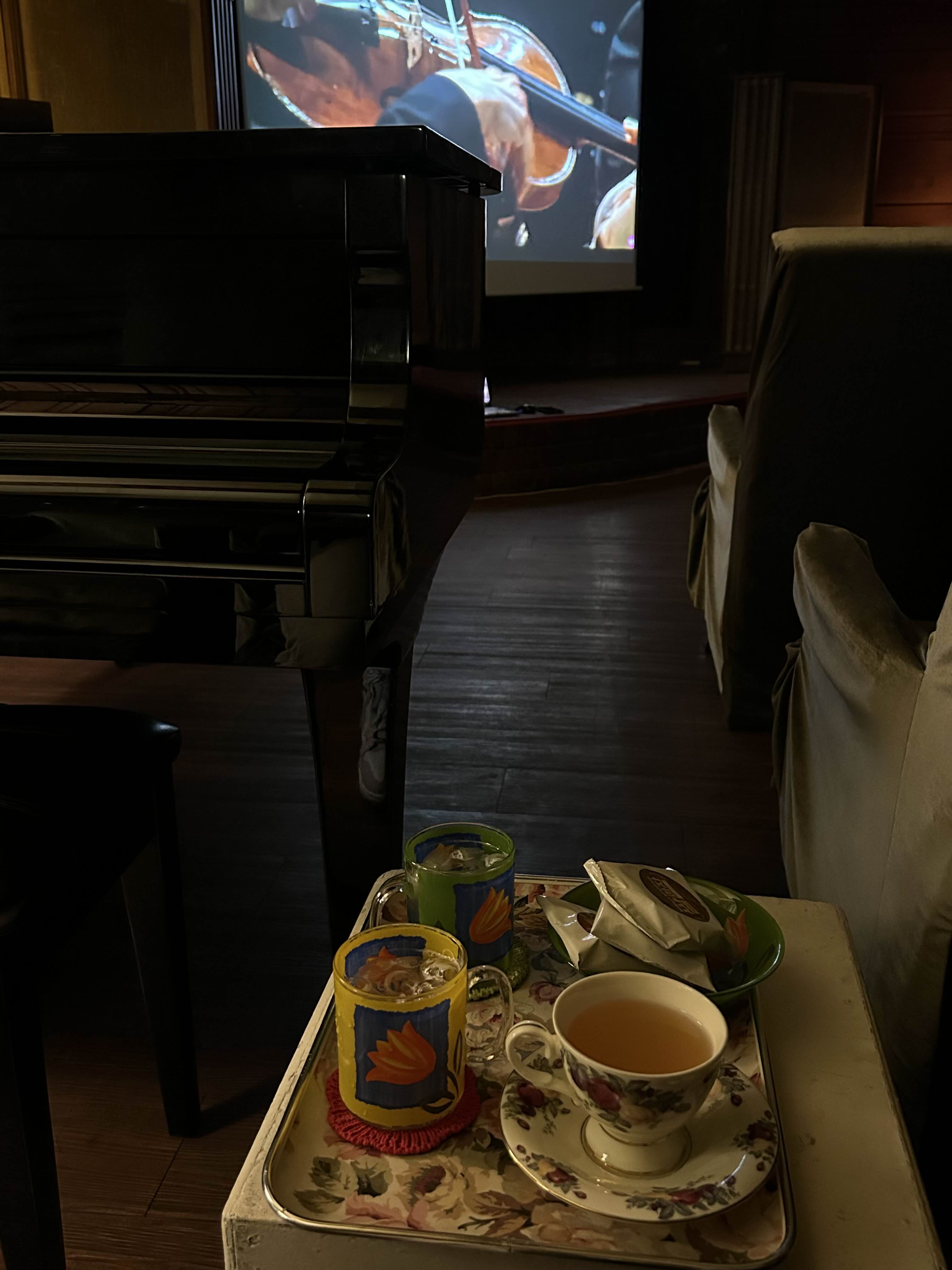 음악 감상 후 모임을 갖는 장소 같아 보였어요.