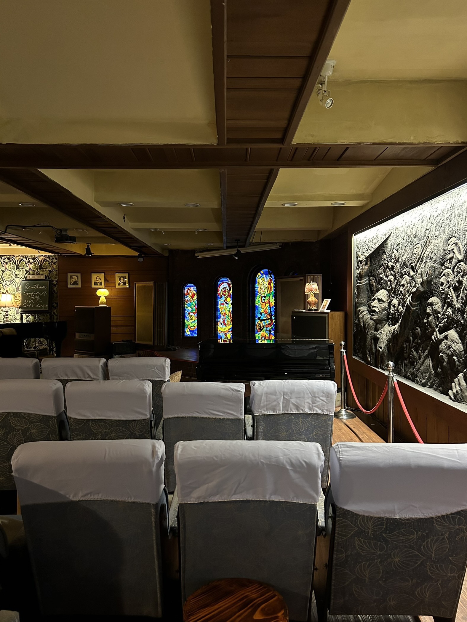 의자들이 이렇게 무대 쪽을 바라보게 배치되어 있어요.