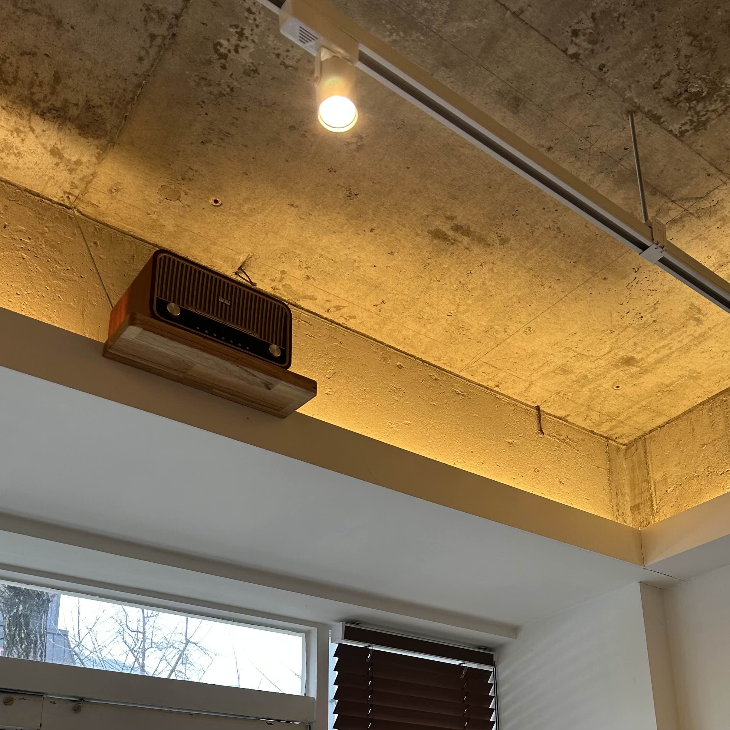 가게에 흘러나오는 음악은 저 스피커에서 나오는 모양