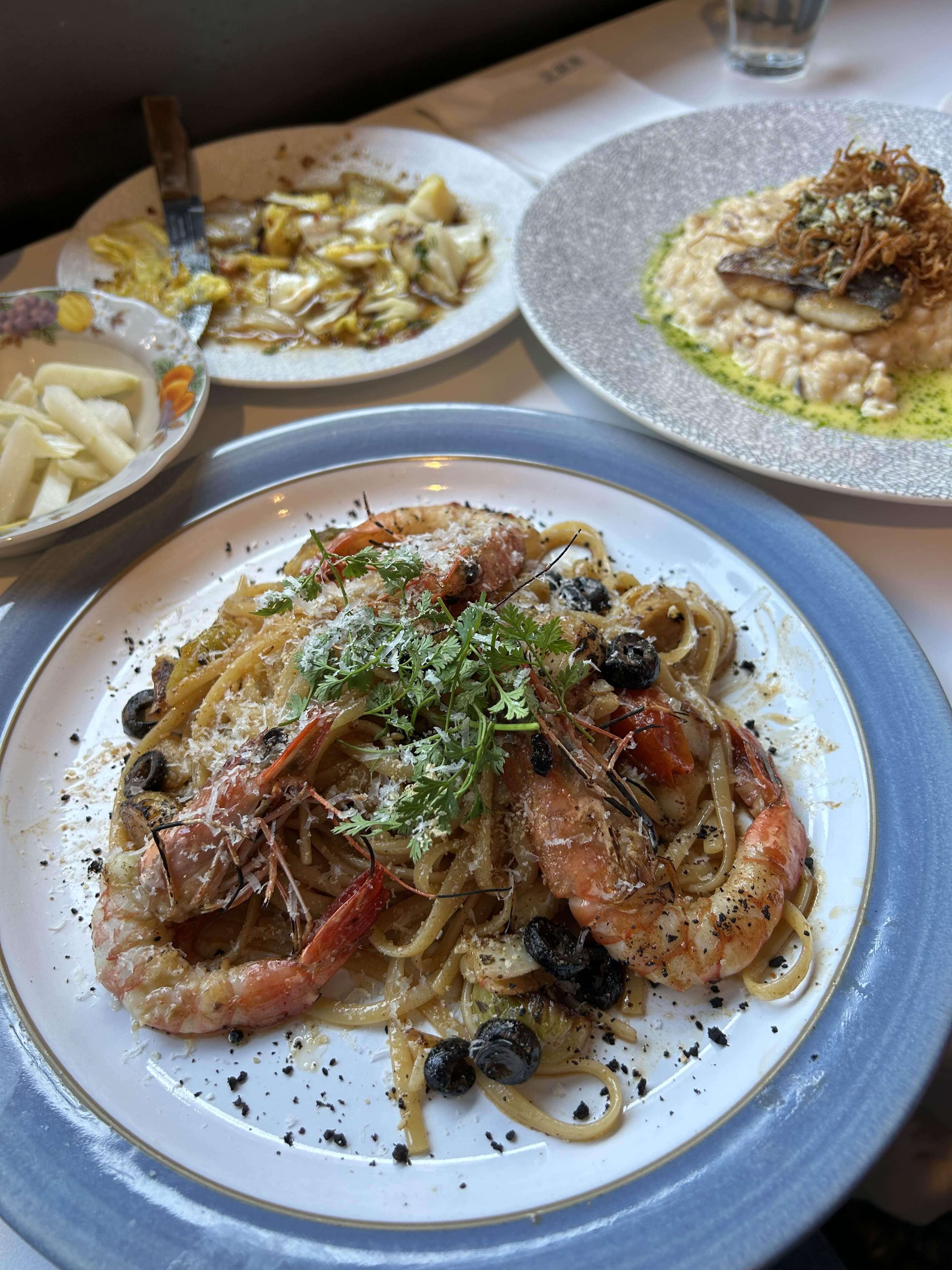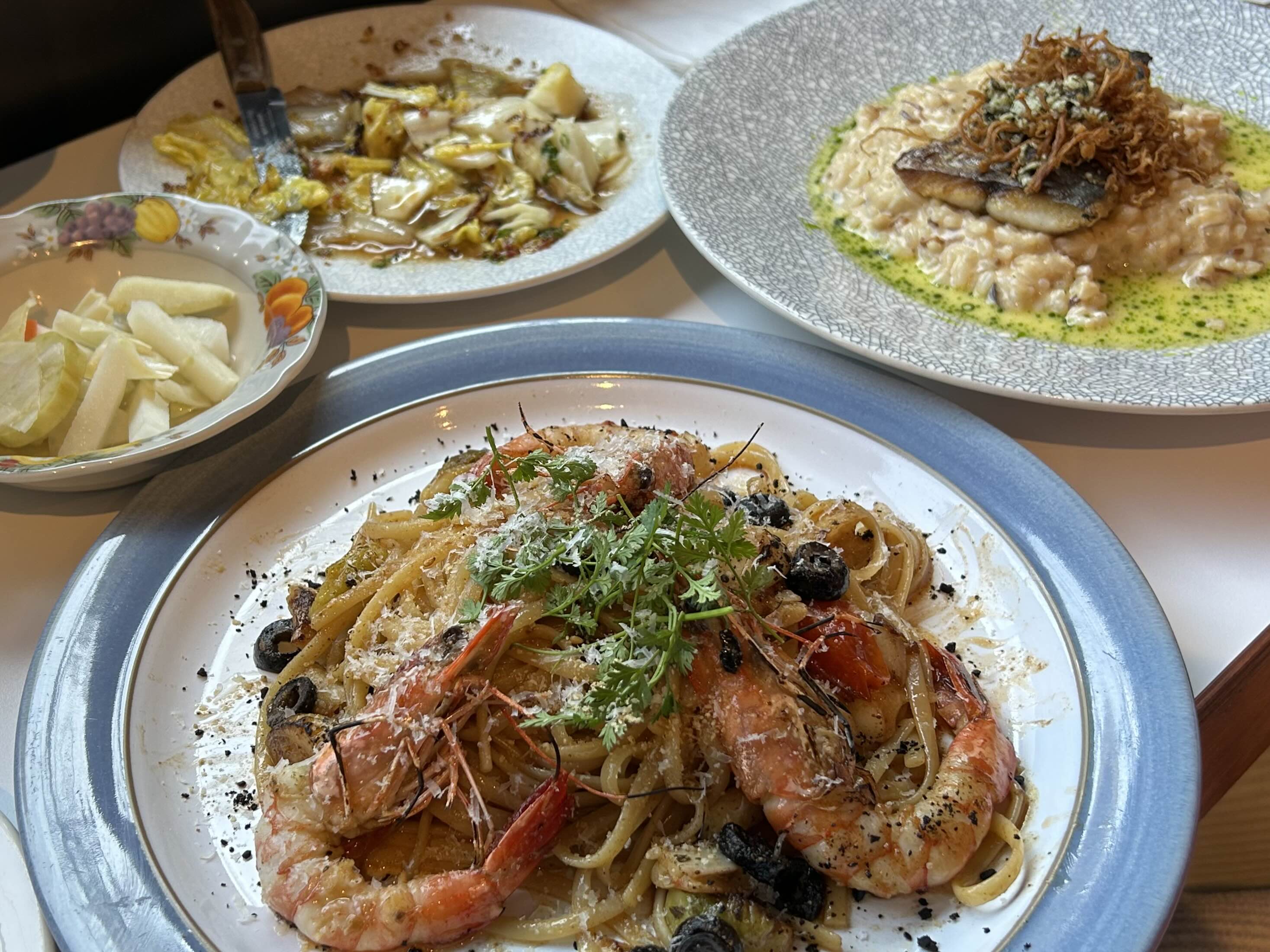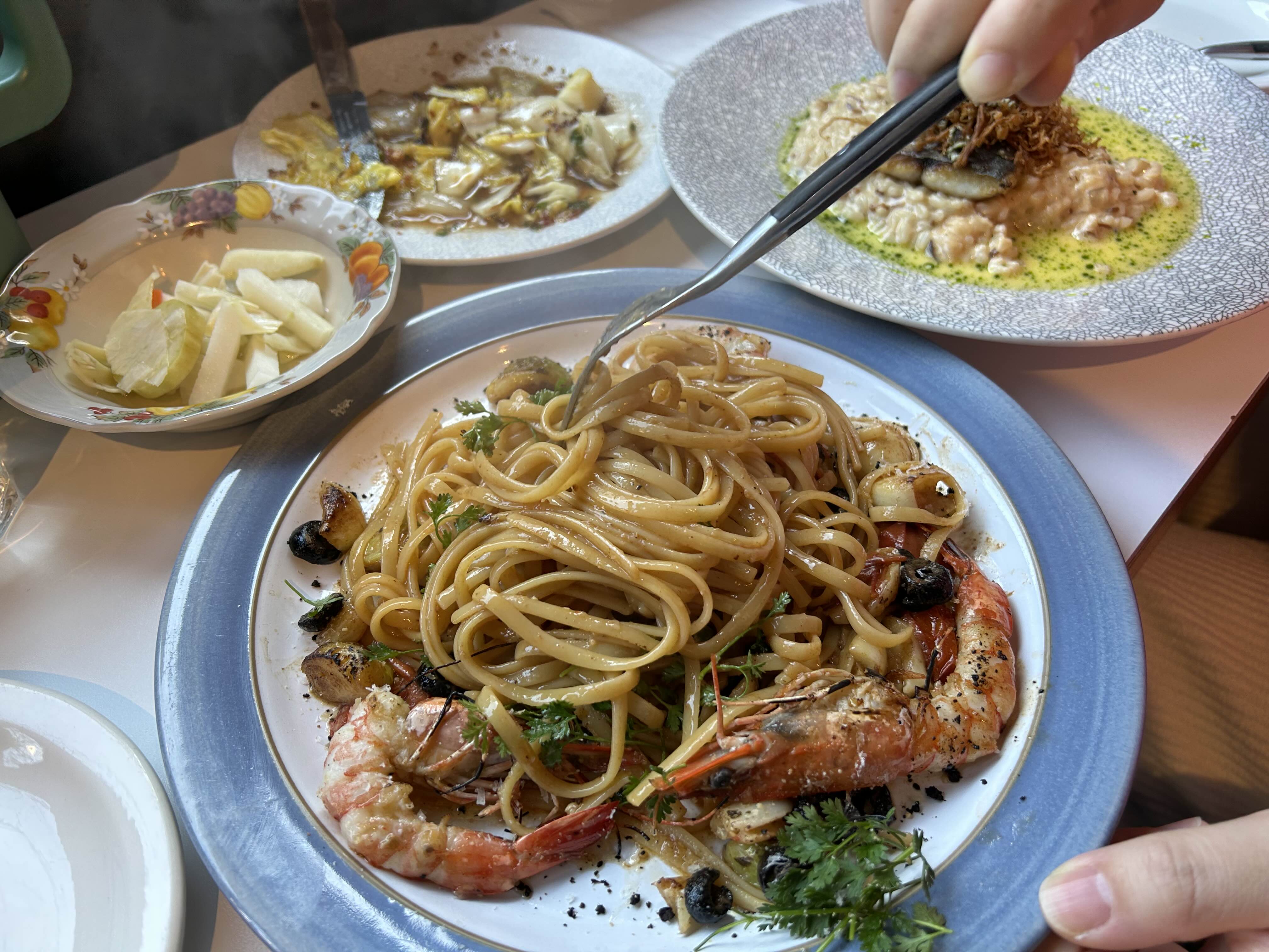파스타까지 주문한 세 가지 음식이 다 나왔어요.