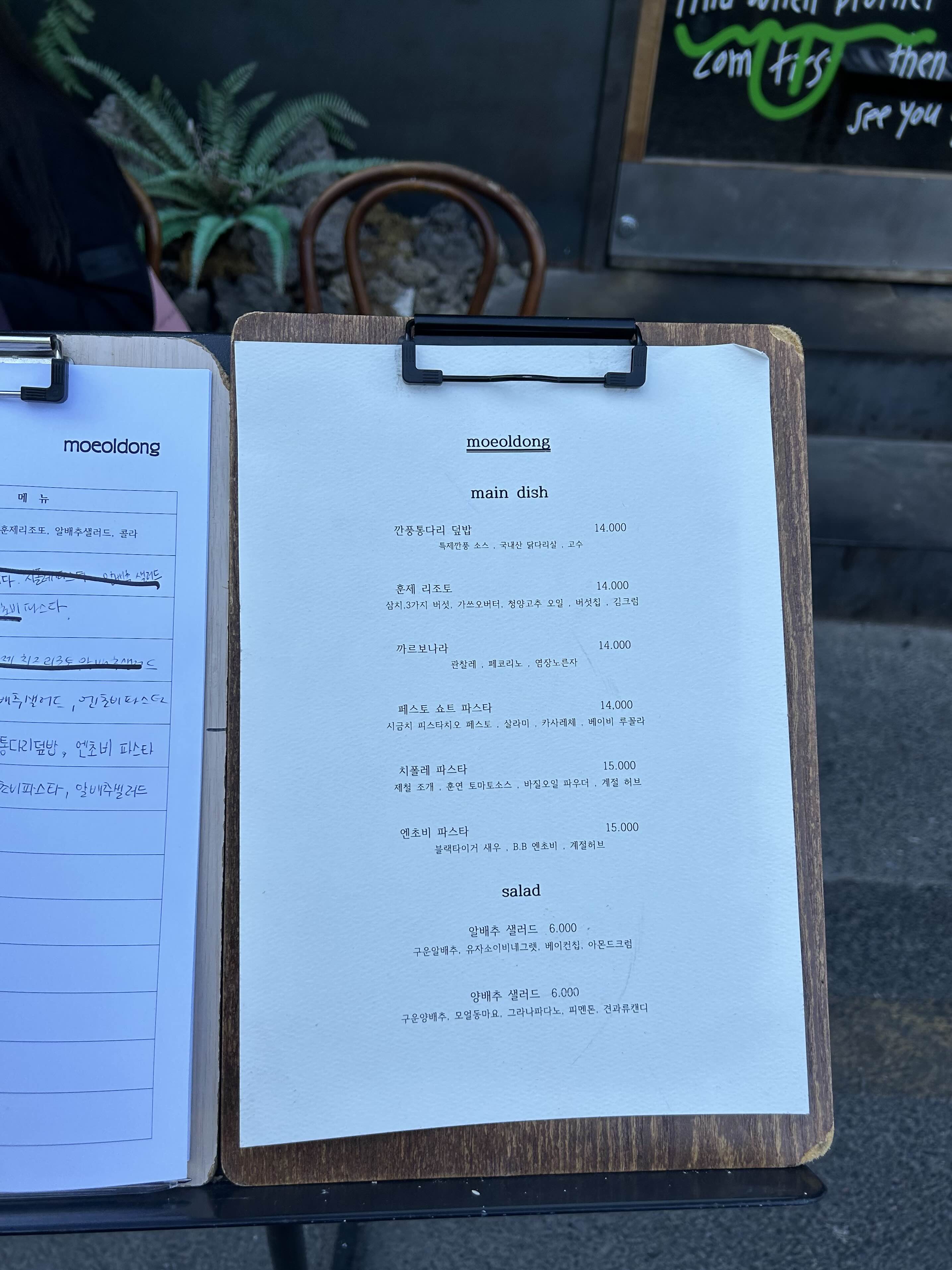 입구 앞에는 이렇게 메뉴판이랑 웨이팅 리스트가 있었어요.